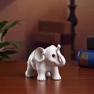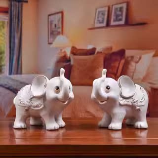 素茗陶瓷吉象如意象一对摆件家居客厅电视柜博古架装饰小象工艺品