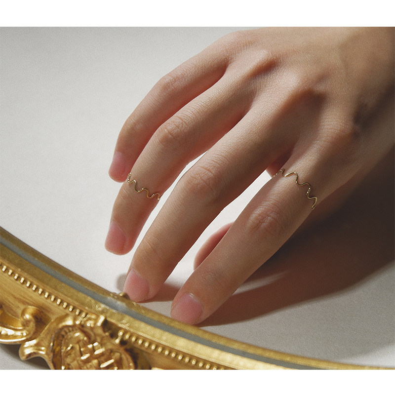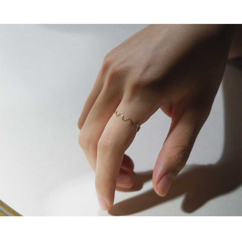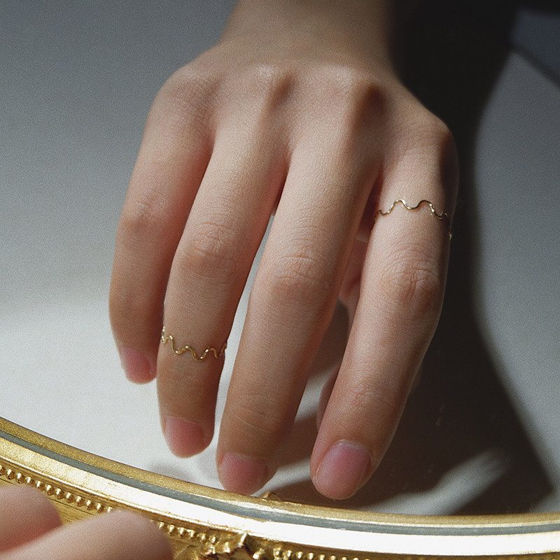 UNELGE手作新品订做波浪线指环日常通勤简约14k包金保色叠戴尾戒