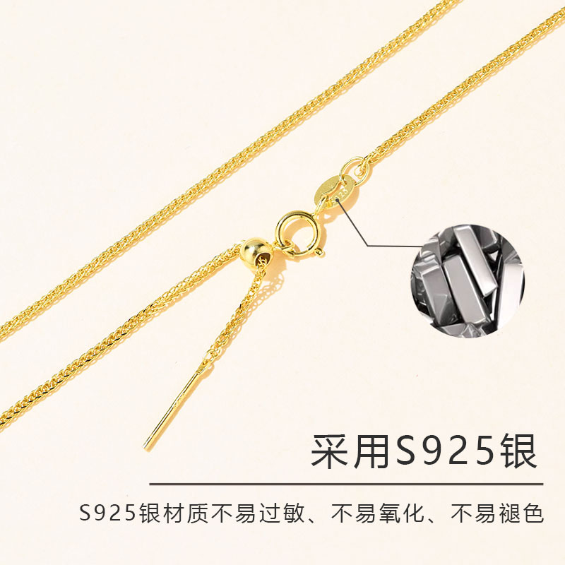 银项链s925银女素链无吊坠简约百搭款裸链银饰通用锁骨链盒子银链