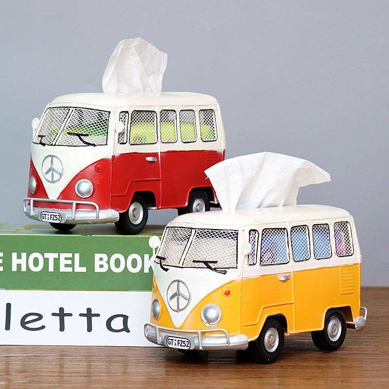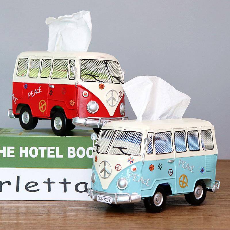 工业风创意铁艺复古巴士汽车模型纸巾盒抽纸盒铁艺纸巾盒模型摆件
