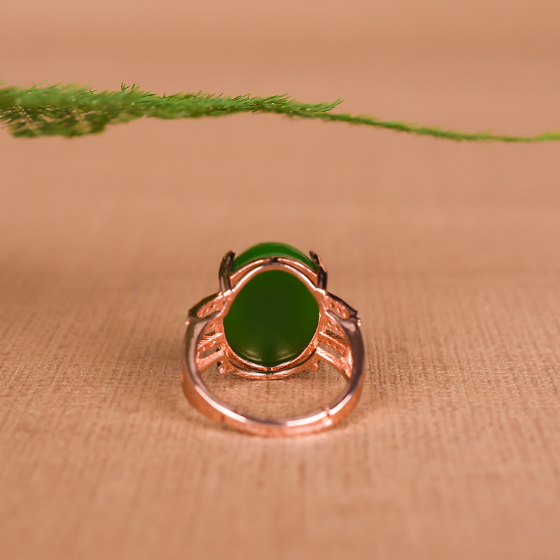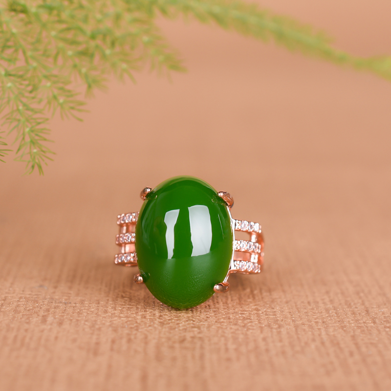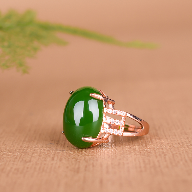 和田碧玉戒指925银镶嵌饰品镶玉戒指女士款流行首饰时尚饰品蜀黍