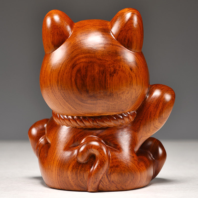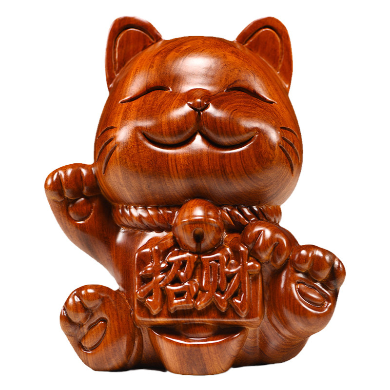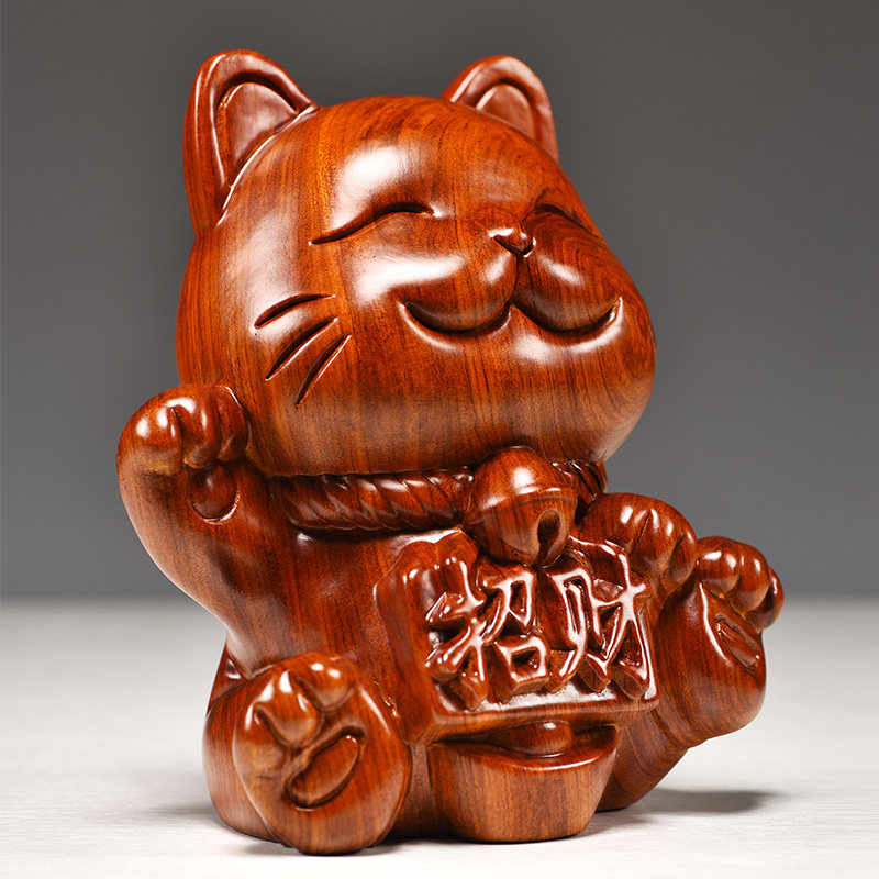 招财猫摆件开业生意兴隆前台家居客厅装饰花梨实木雕刻发财猫礼品