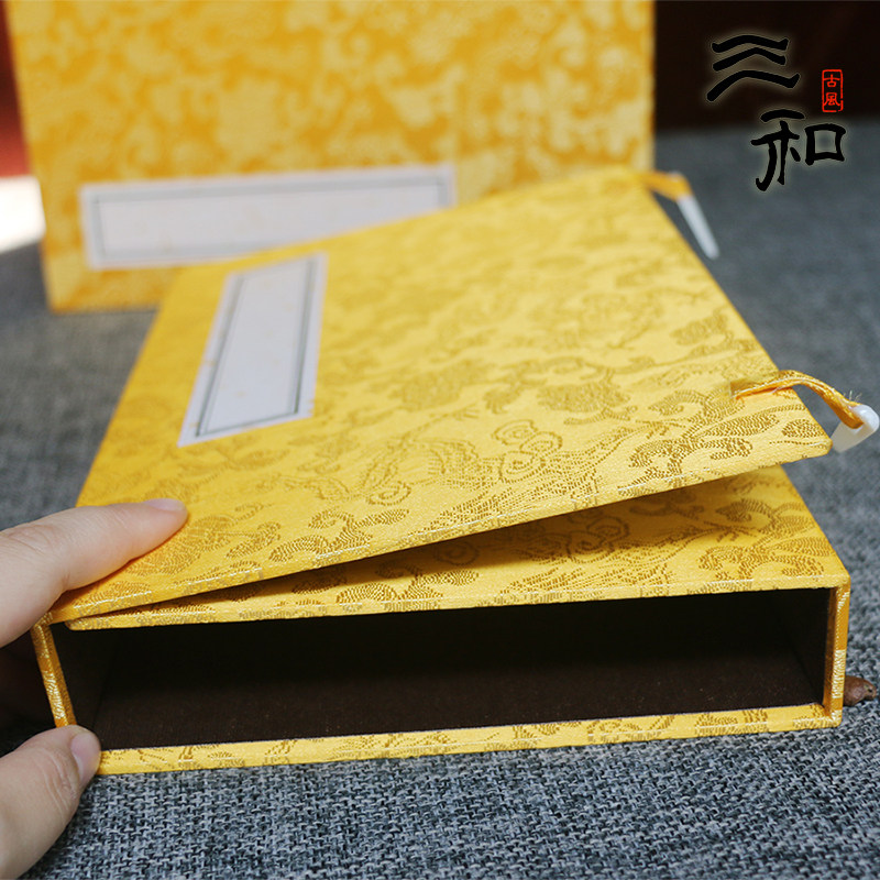 黄色空函套仿古线装书盒经书盒子复古书套抄经本涵套锦缎可定制