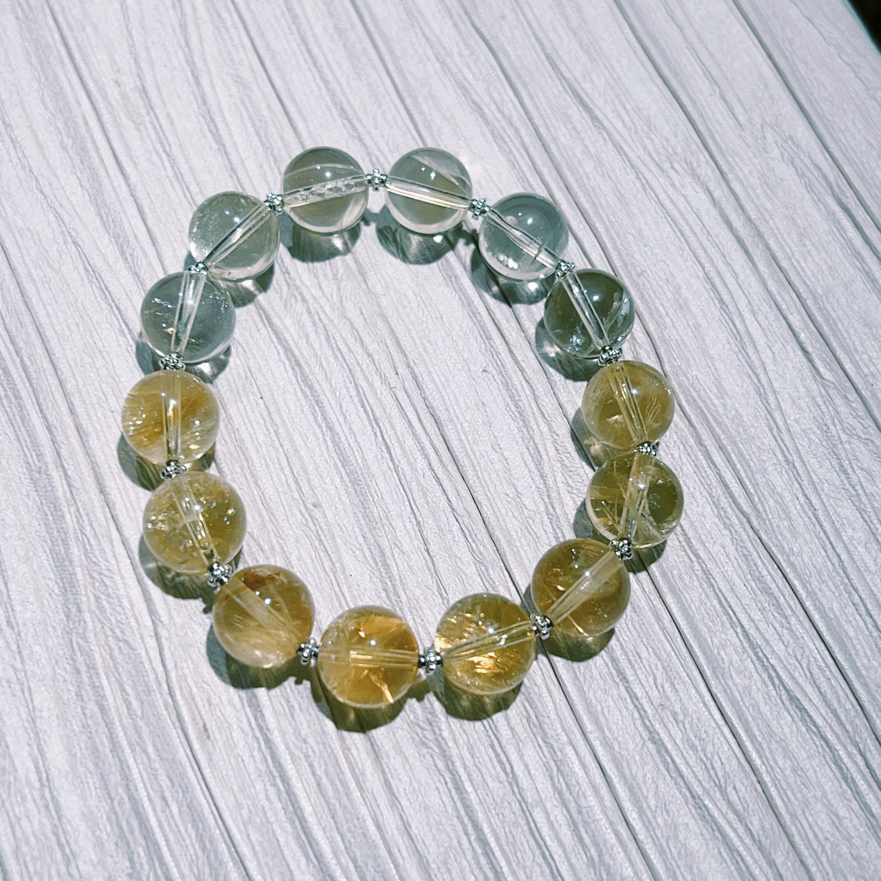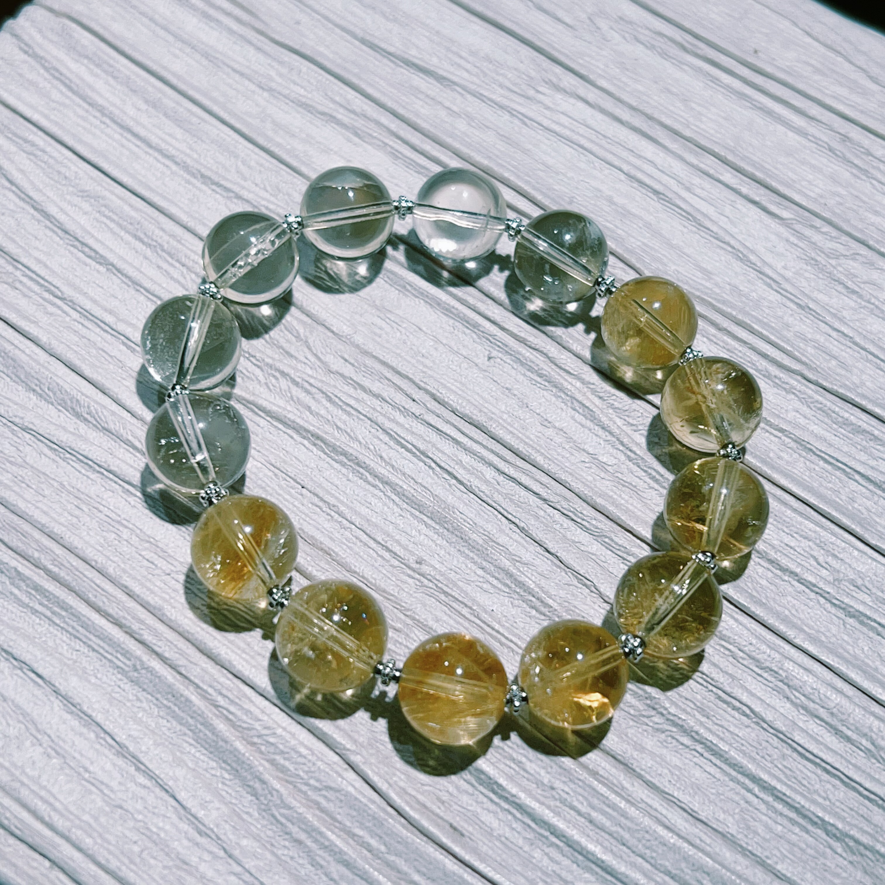 天然黄水晶渐变色圆珠手串单圈弹力绳10mm原创设计清新百搭新款