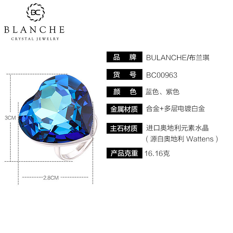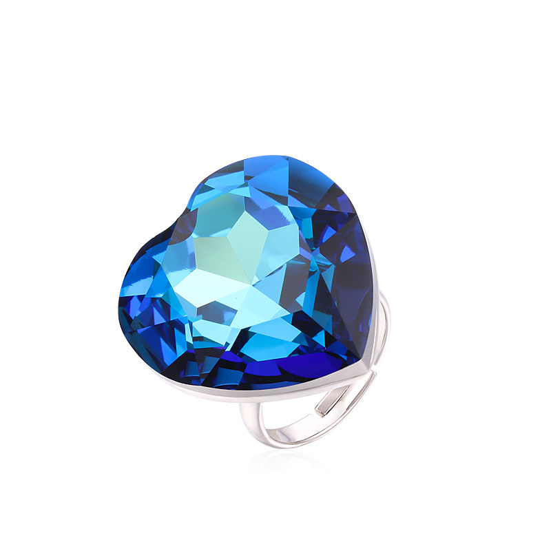进口奥地利水晶海洋之心夸张戒指气质大号食指高级感开口可调节女