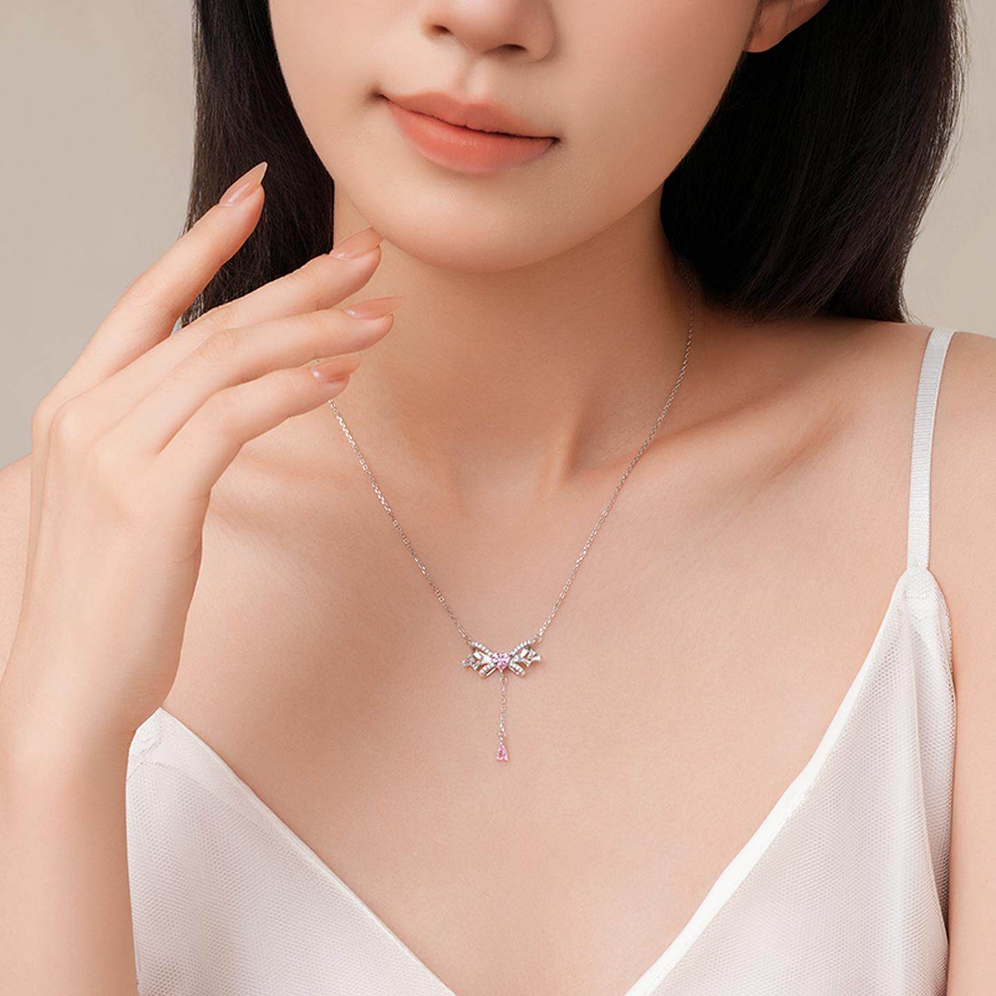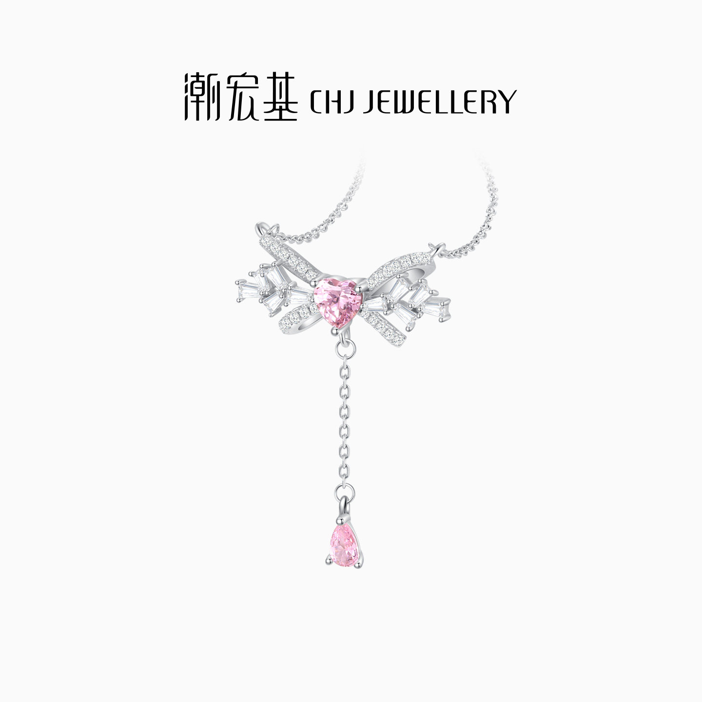潮宏基追光s925银项链银饰坠链颈饰蝴蝶结ins风通勤女生日礼物