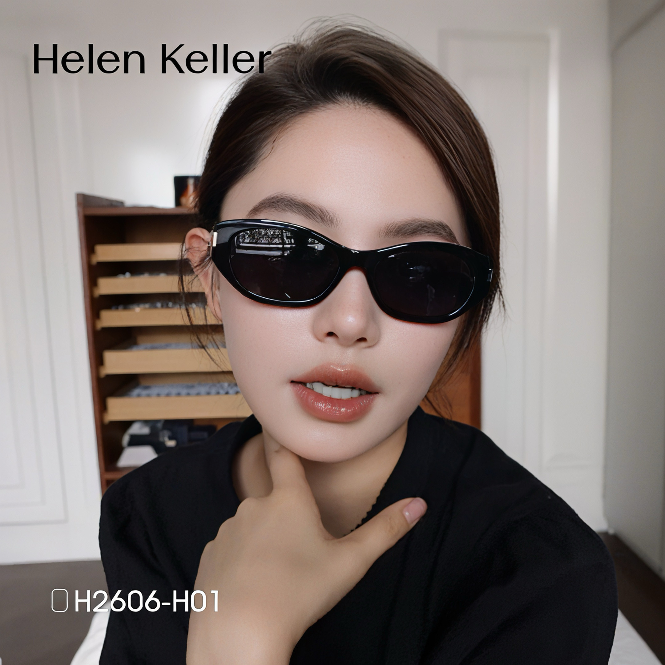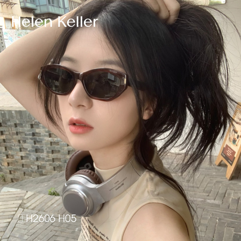 海伦凯勒猫眼墨镜女偏光开车驾驶窄框太阳眼镜近视配度数男H2606