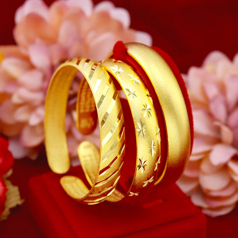 越南沙金手镯女古法传承系列仿真黄色正品久不掉色纯金色开口