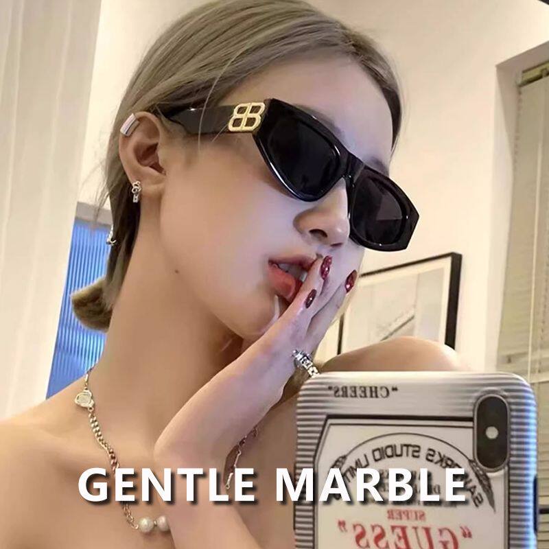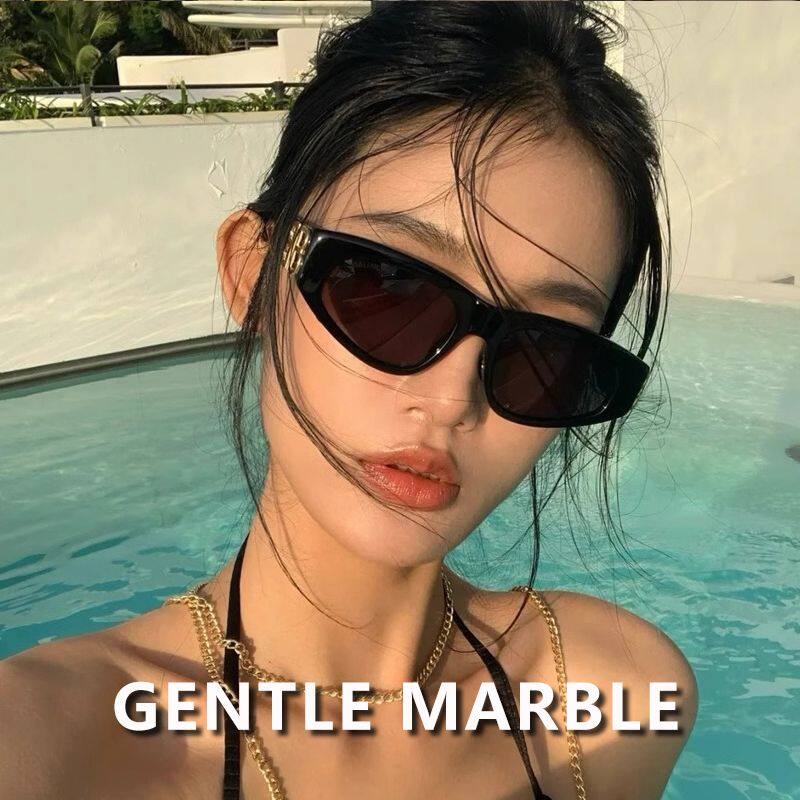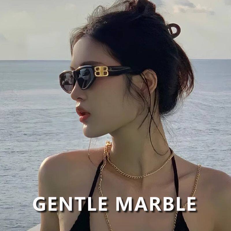 简约猫眼太阳镜男女通用黑色金属装饰小框墨镜防晒遮阳潮流