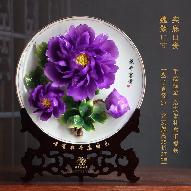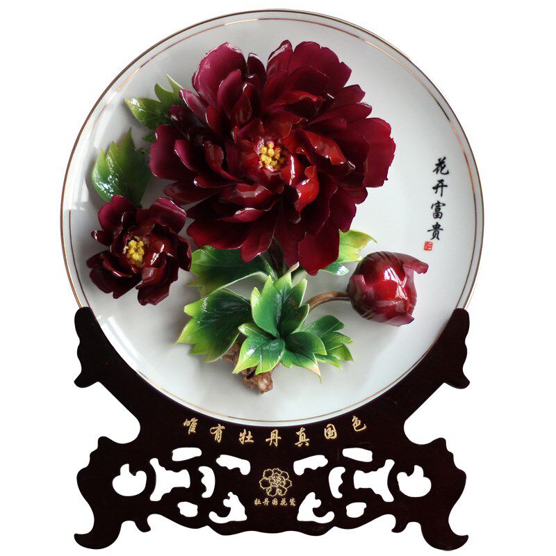 牡丹瓷盘摆件陶瓷花盘家居摆设挂盘开业乔迁商务礼品书房客厅装饰