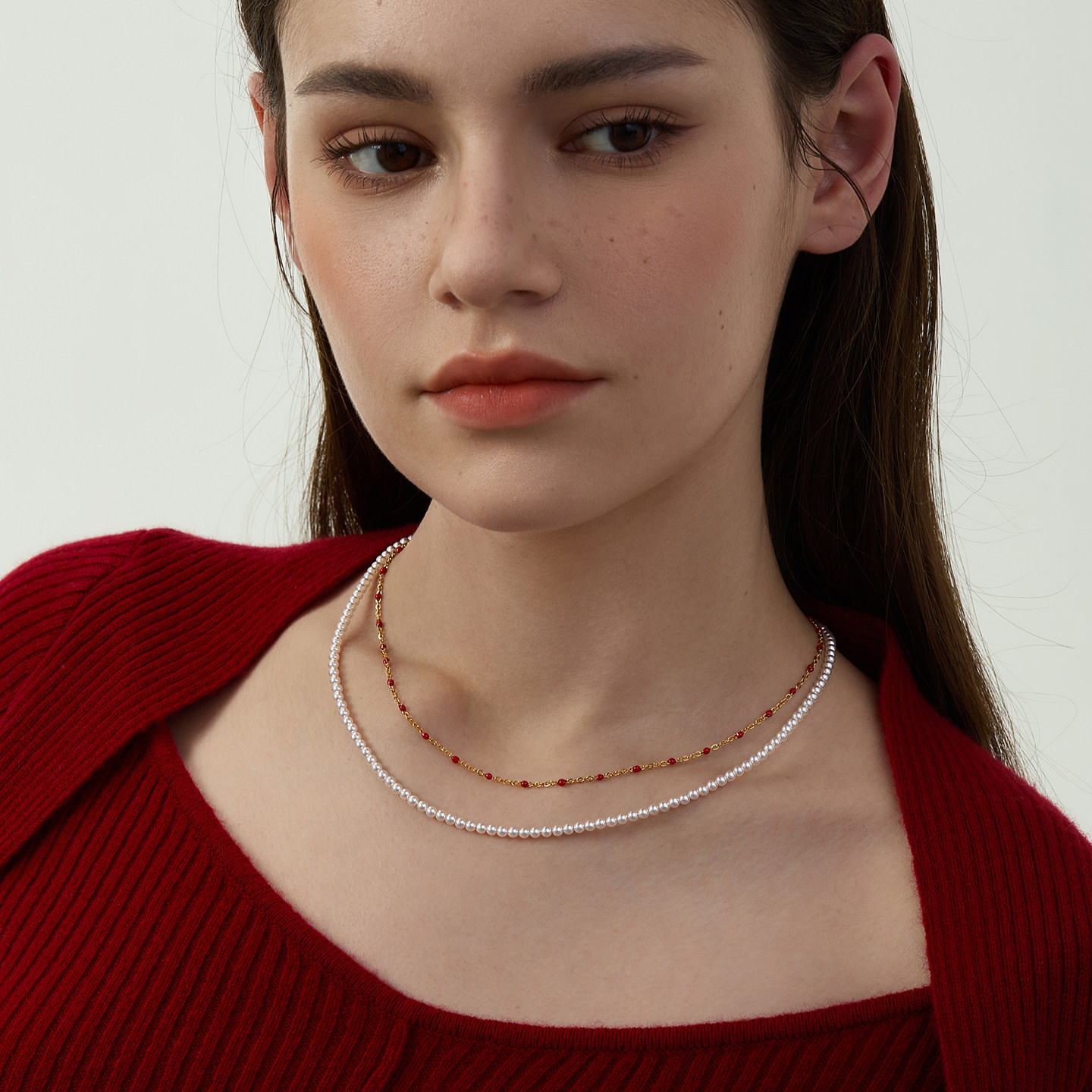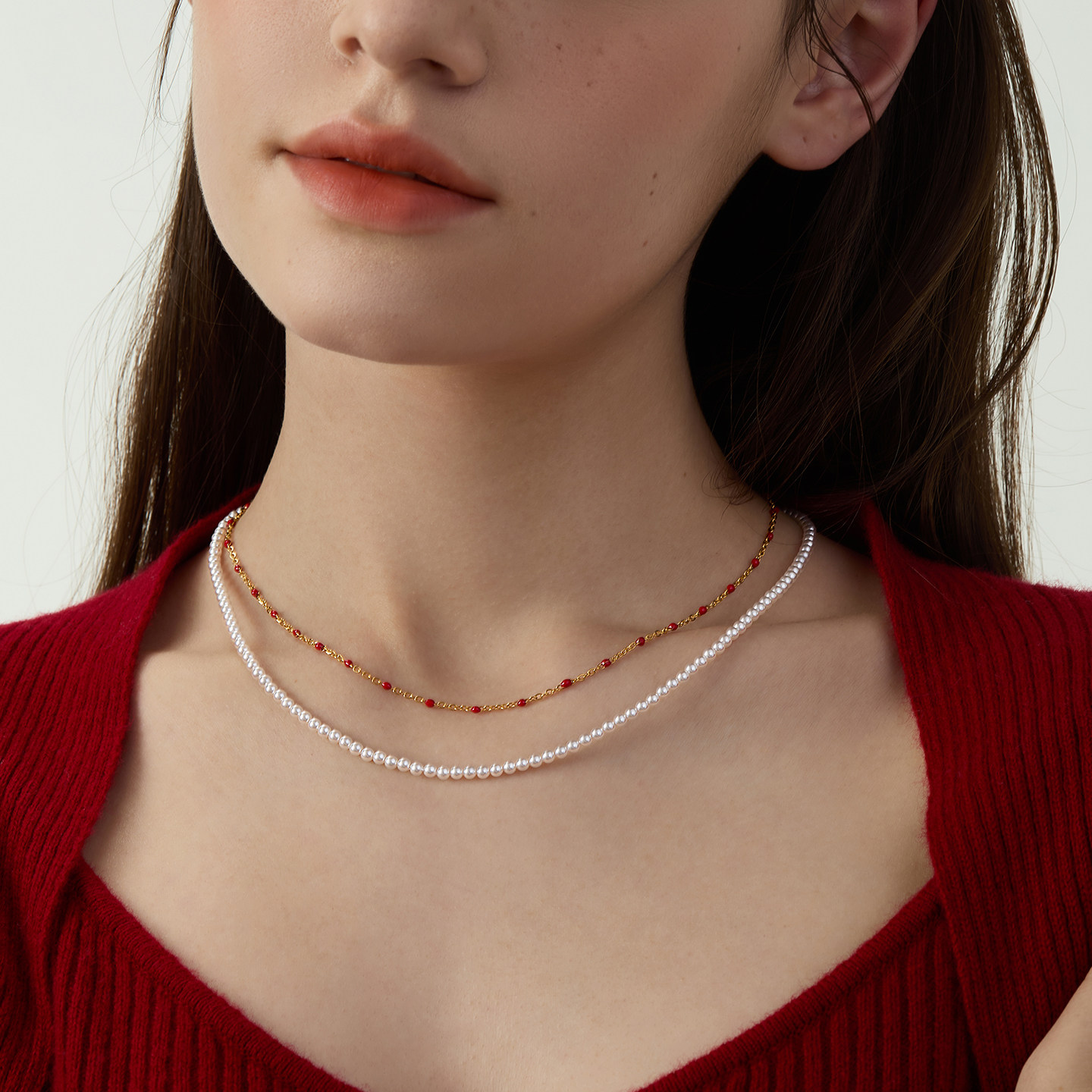 UII珐琅滴釉红色锁骨链18K镀金简约项链女高级感轻奢小众2026新款