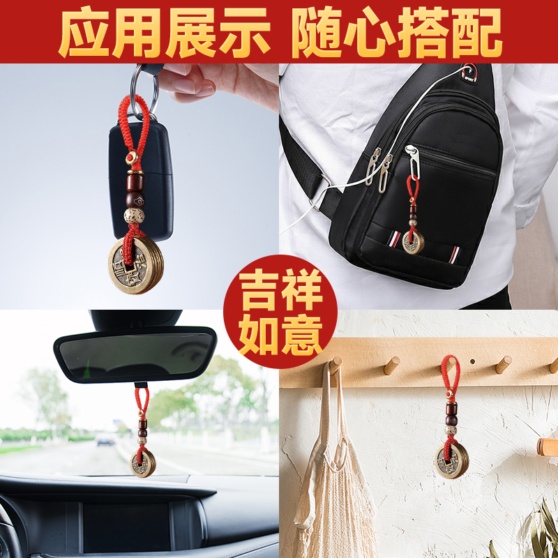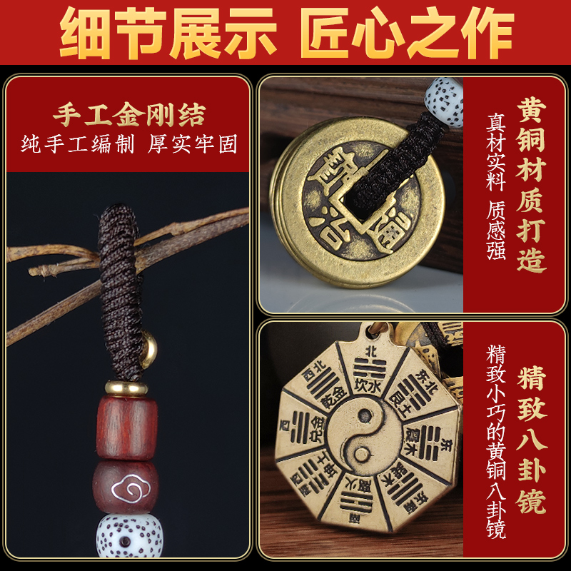 五帝钱铜八卦镜葫芦挂件男女士钥匙扣随身携带工艺品旧铜钱币配饰