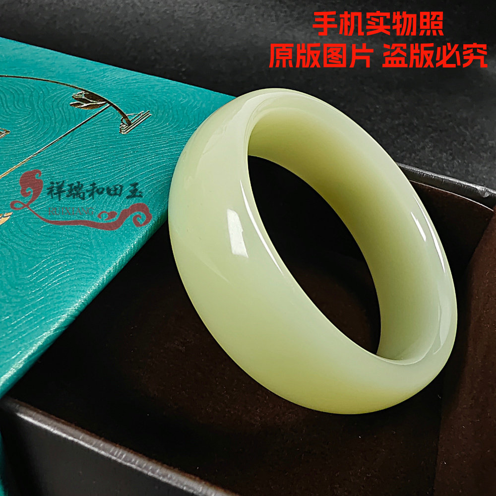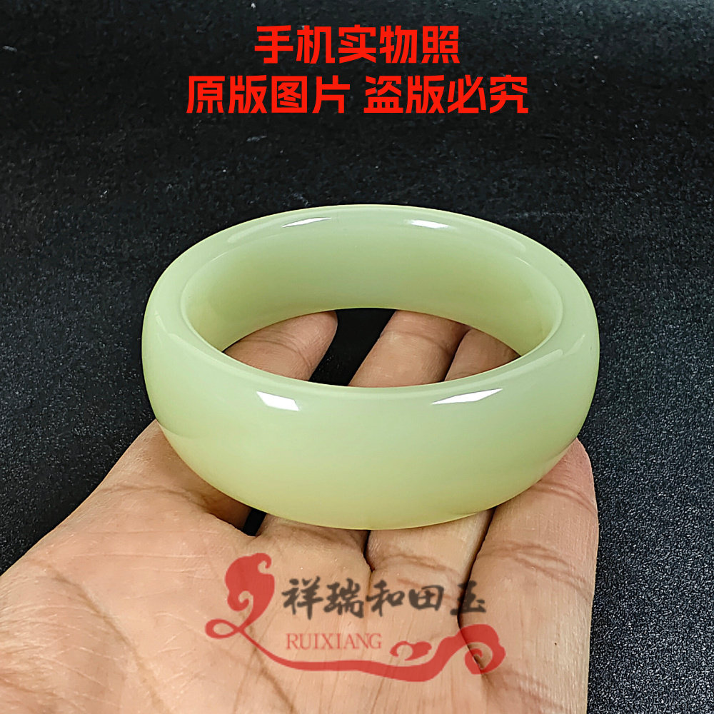 加宽新疆玉镯子青白玉高冰晴水玉手镯老坑料母亲老婆礼品