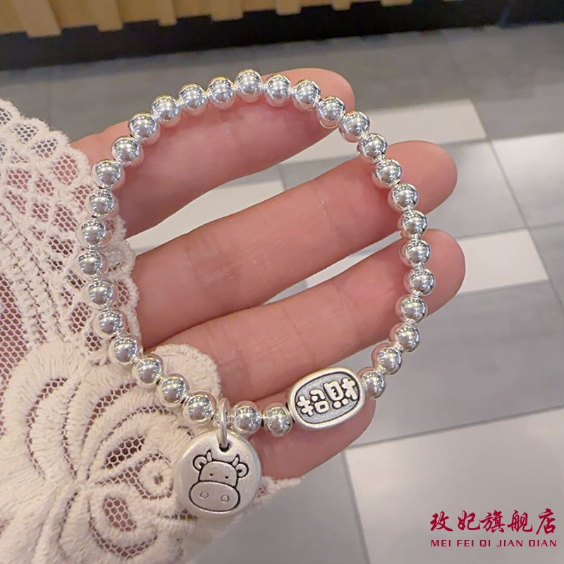 正生招财纳福生肖牛纯银手链足银999女宝宝儿童小孩大人银珠手串