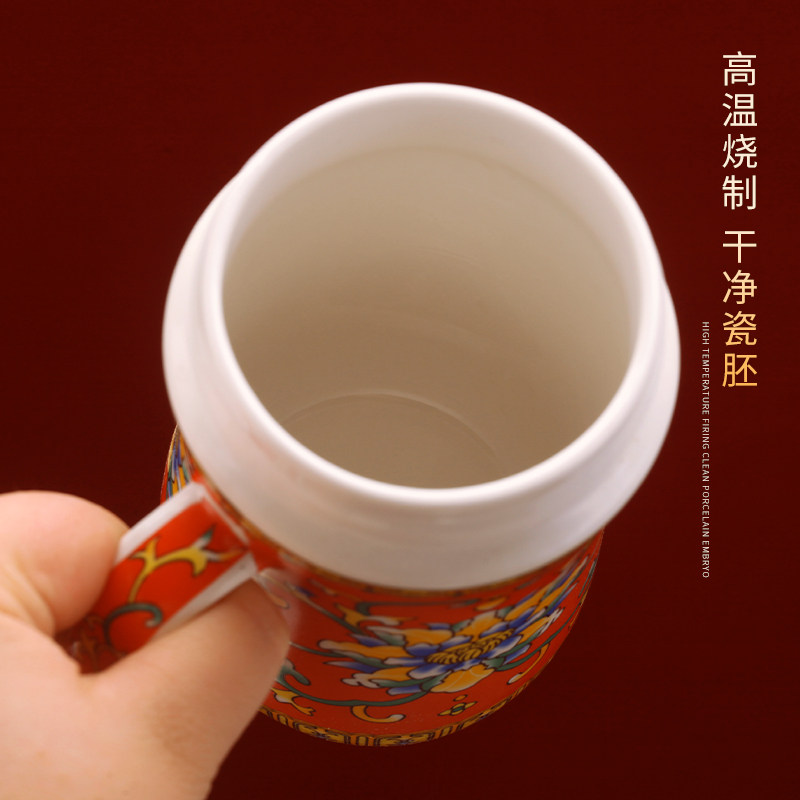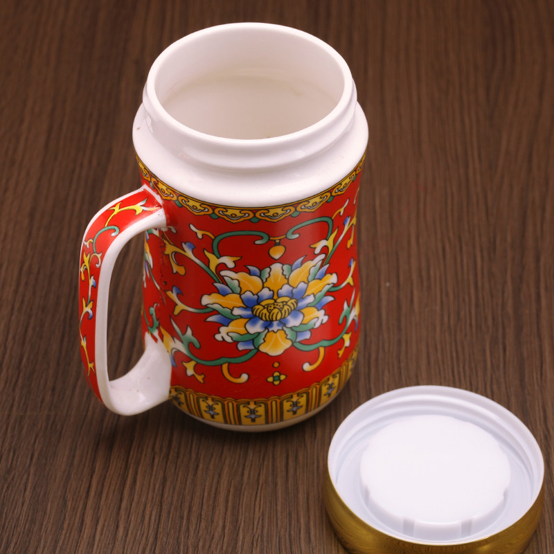 西藏式格桑花缠枝纹茶杯茶壶敬水白色餐具酥油茶具民族特色陶瓷