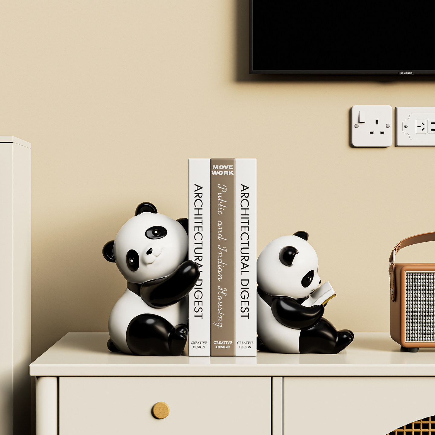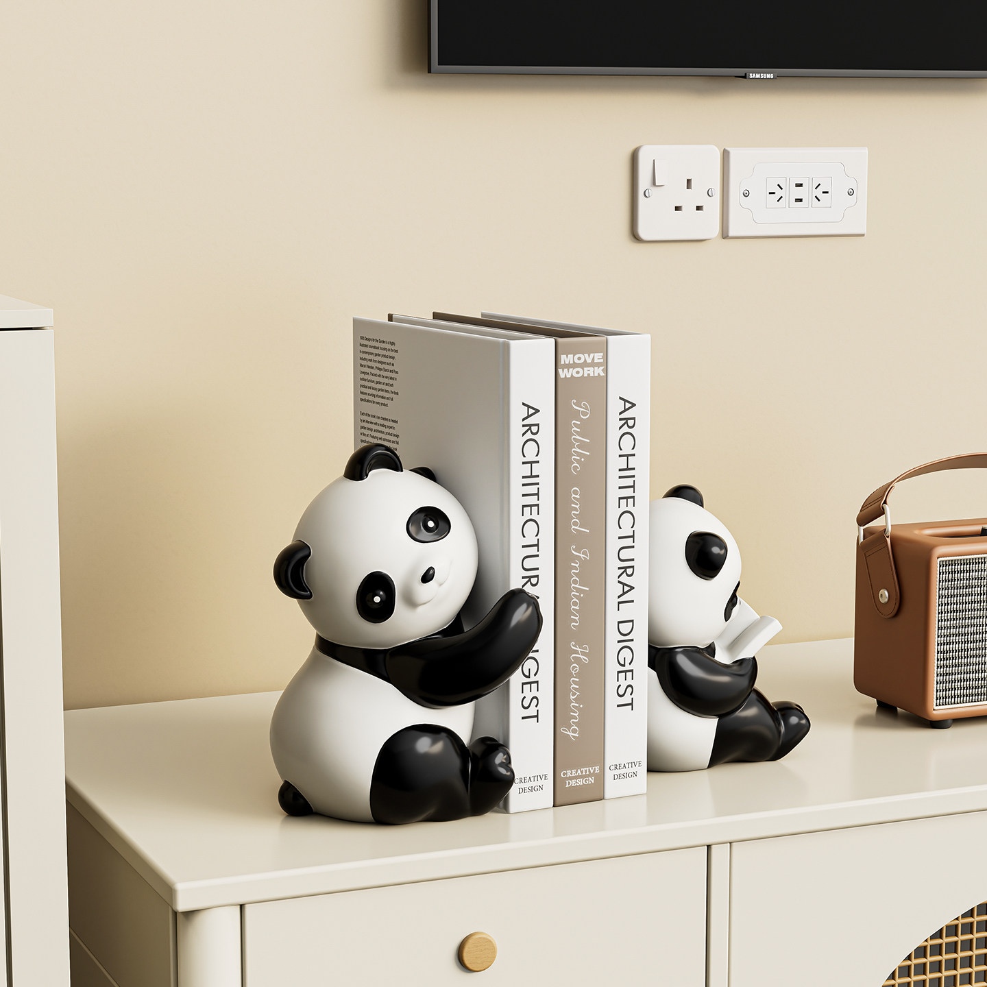 可爱熊猫书档客厅书房装饰书架书立儿童房摆件实用生日礼物送学生
