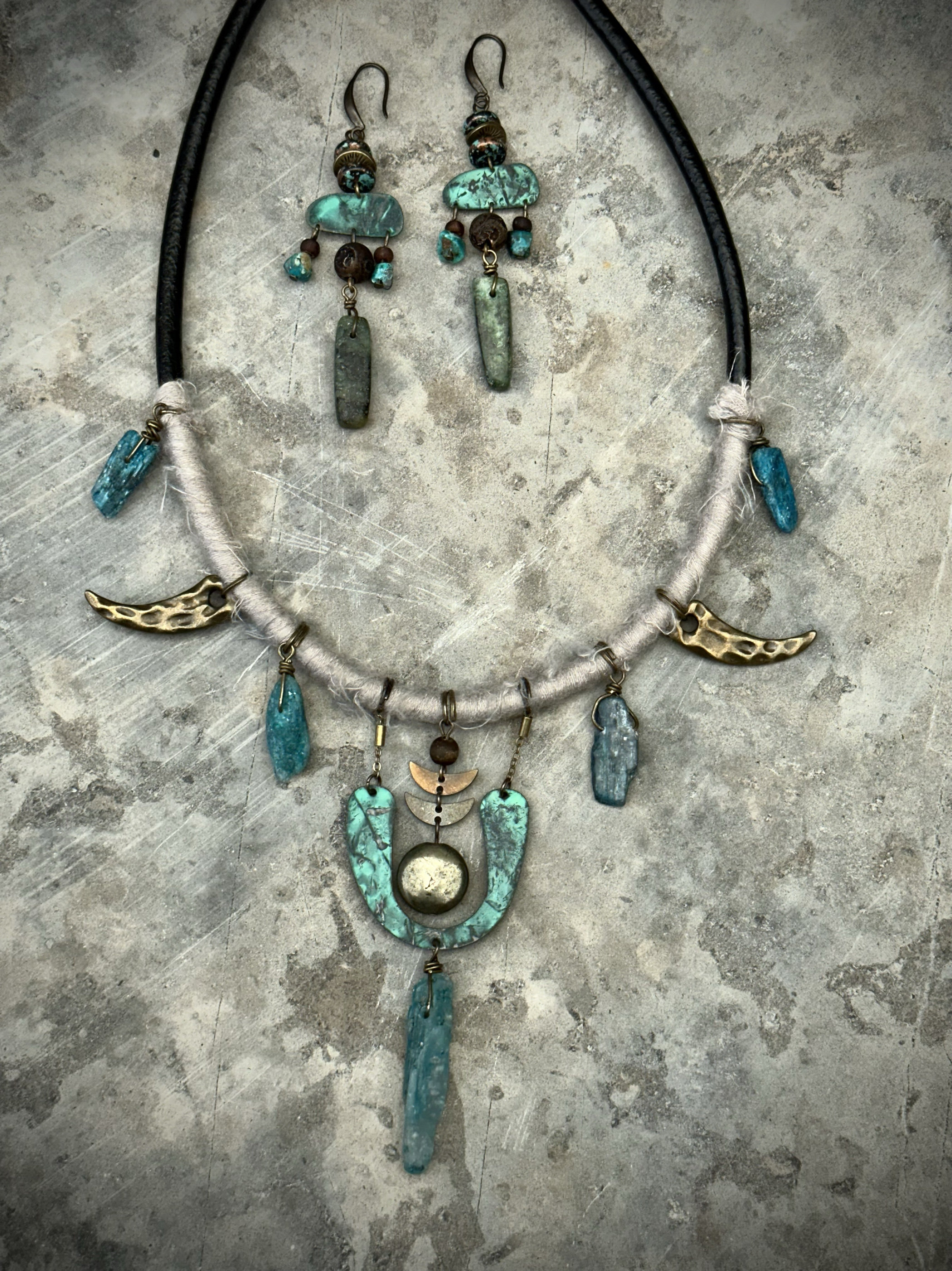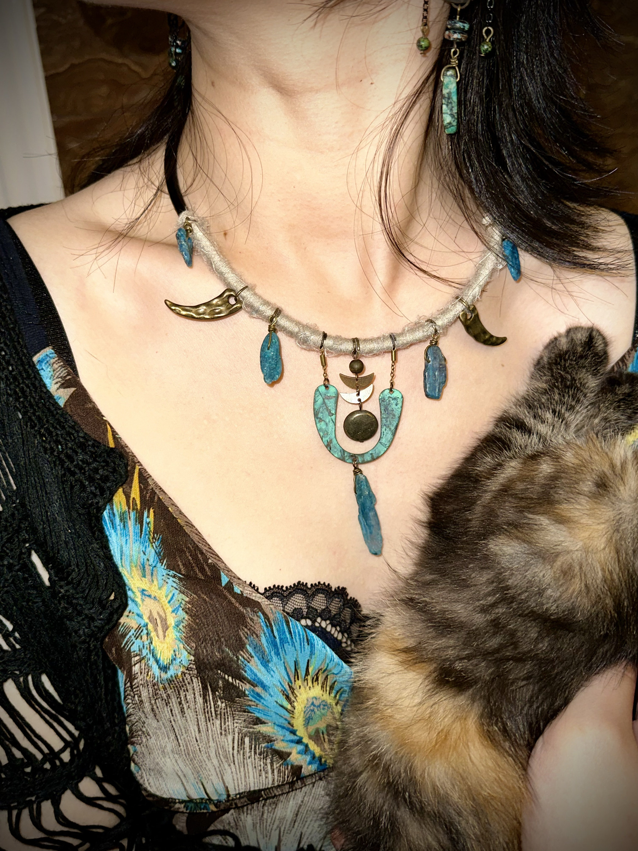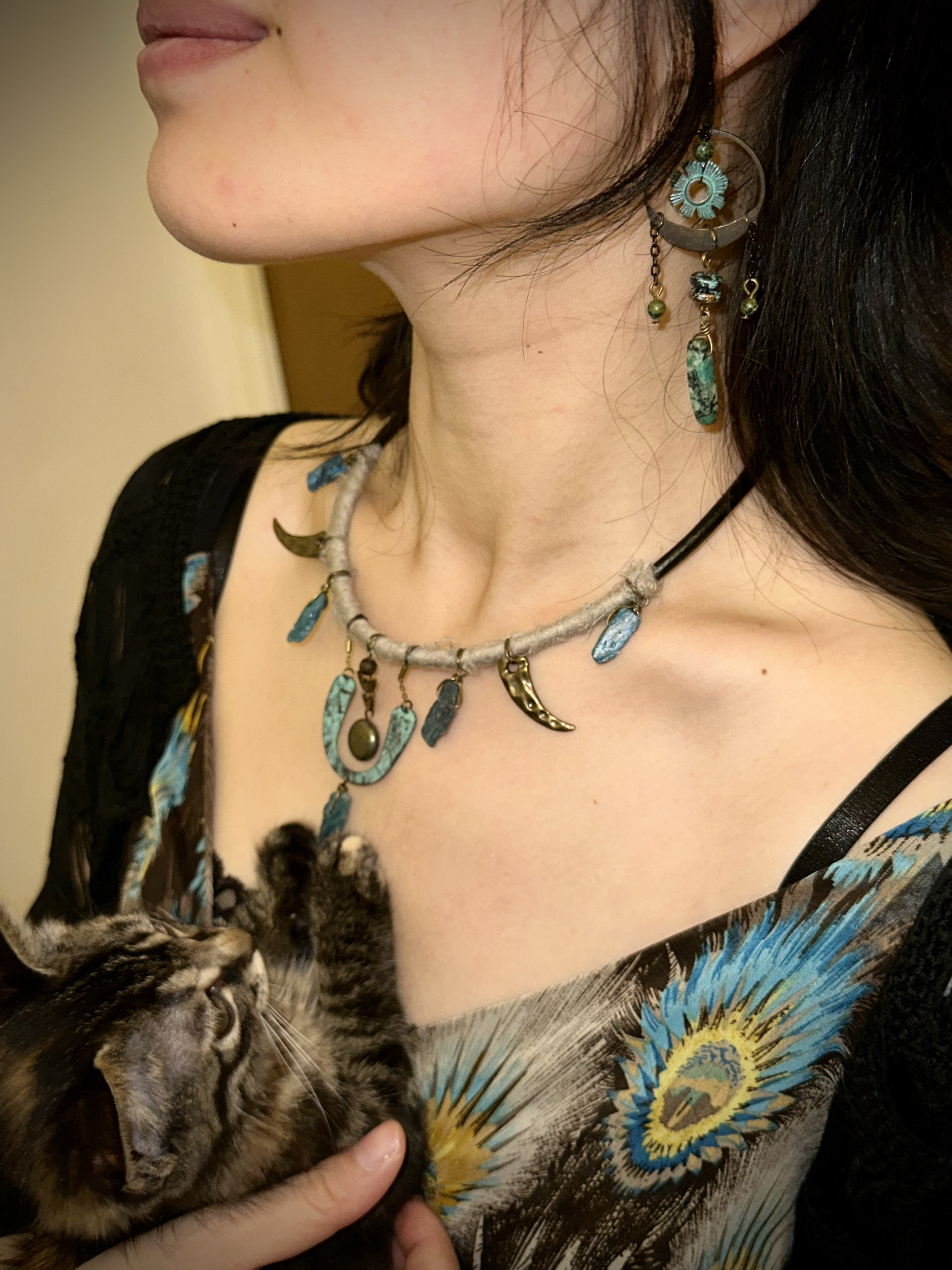 岭涯|蓝绿色系原创手作小众个性夸张复古祭司部落风混搭平价项链