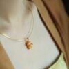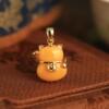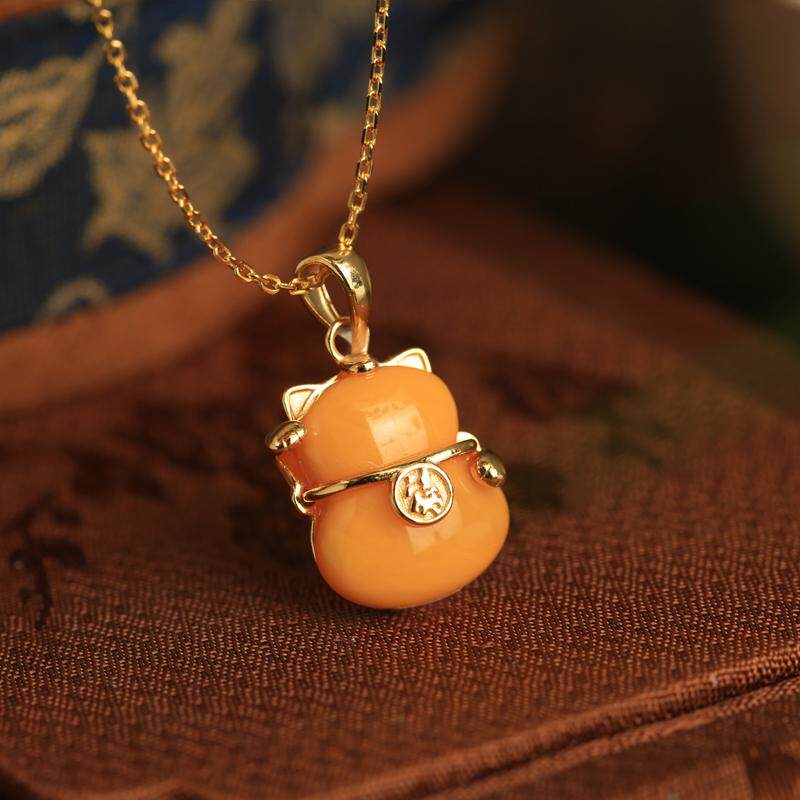 小银匠天然蜜蜡纯银招财猫吊坠女国风金包银黄色玉石小猫招财项链