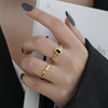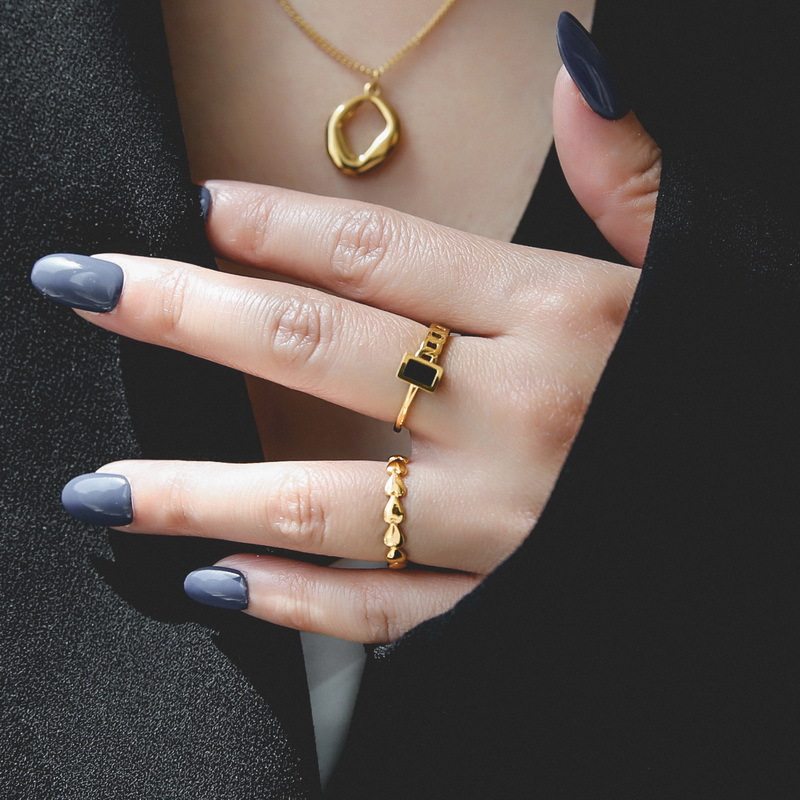 欧美冷淡风简约个性黑色小方块不对称复古链条钛钢镀18K戒指女ins
