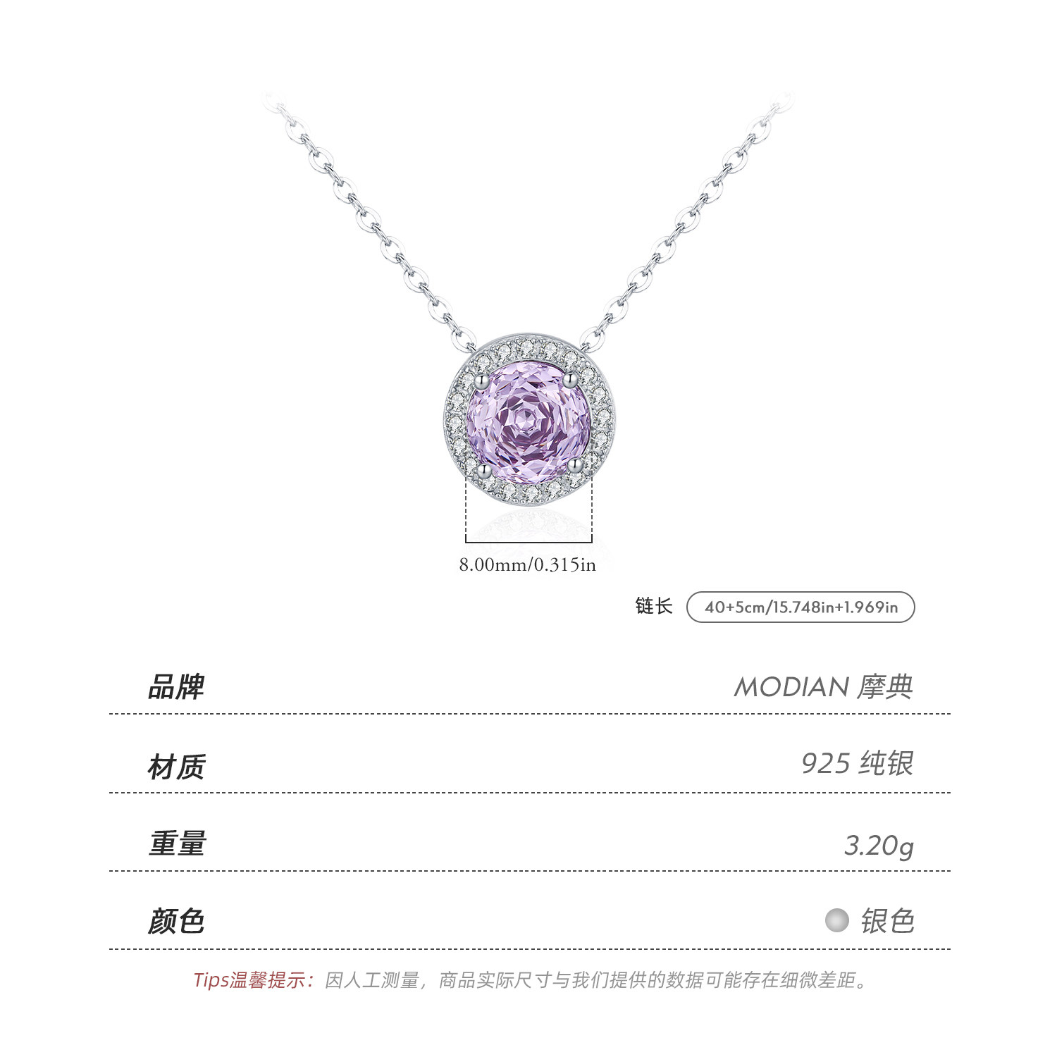 MODIAN摩典S925纯银薰衣草色玫瑰切仿钻项链女精致高级感生日礼物