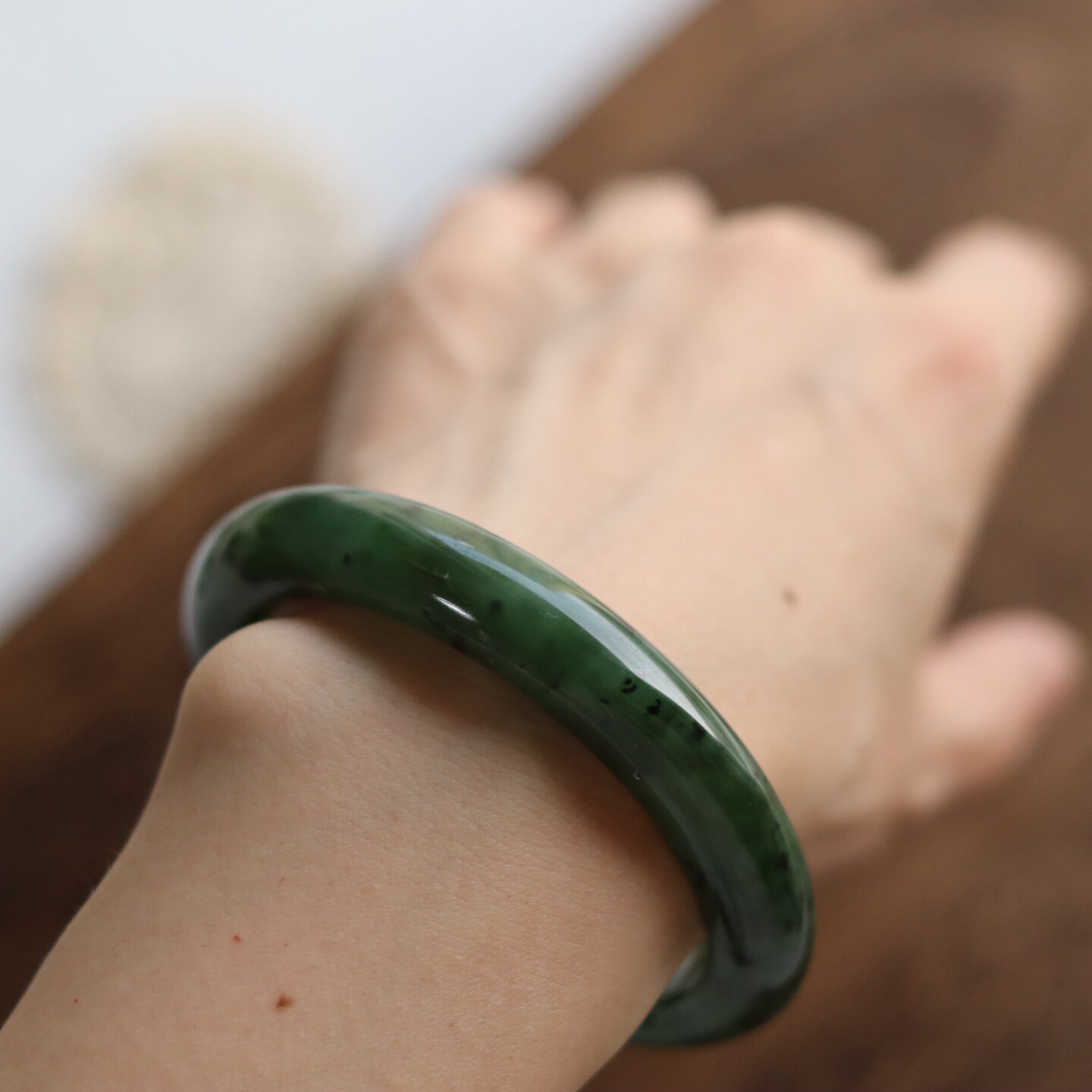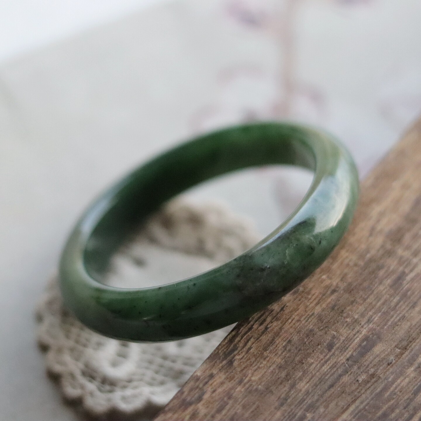#一物一图# 韵痕如诗 - 天然绿色和田玉镯碧玉手镯女新中式礼物
