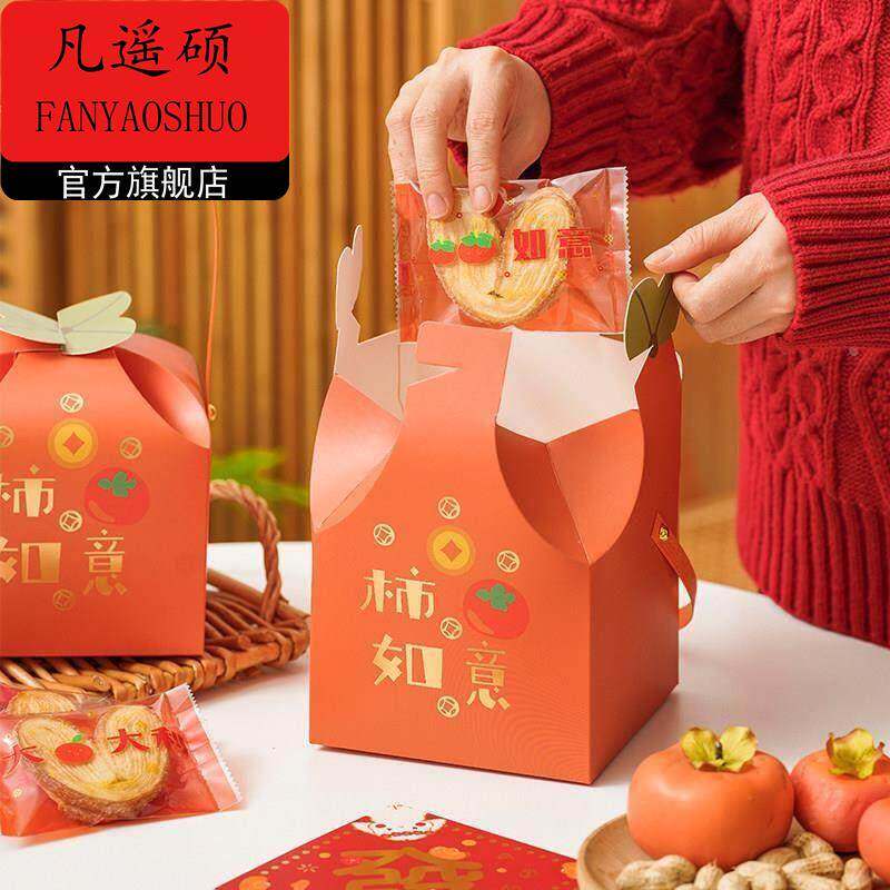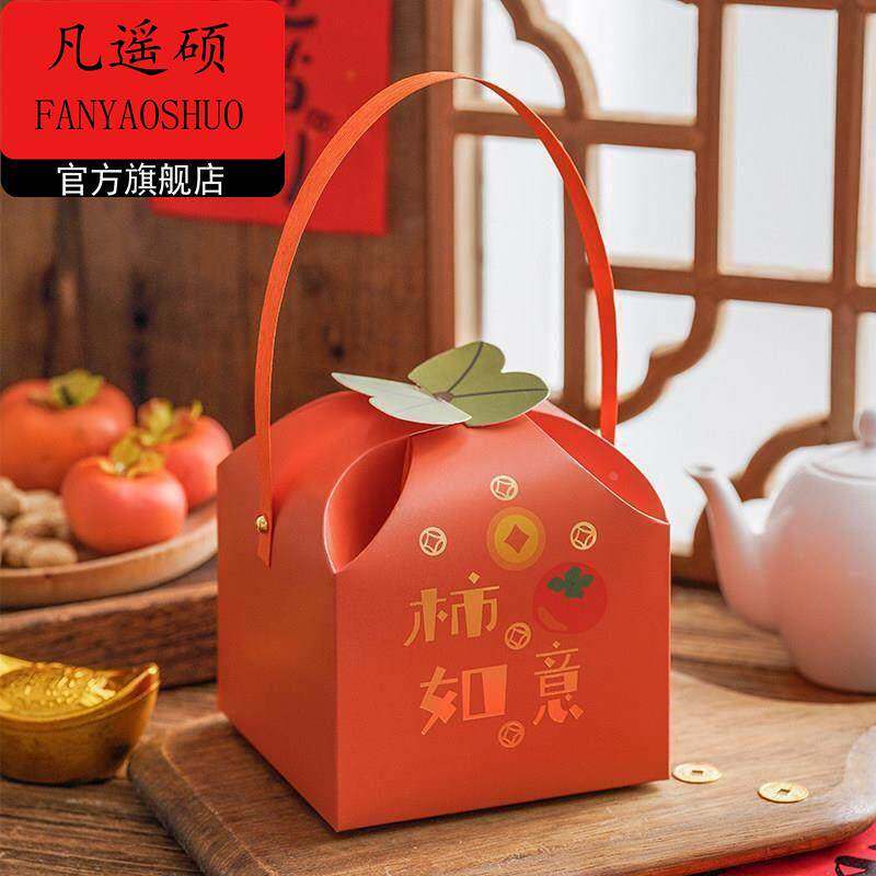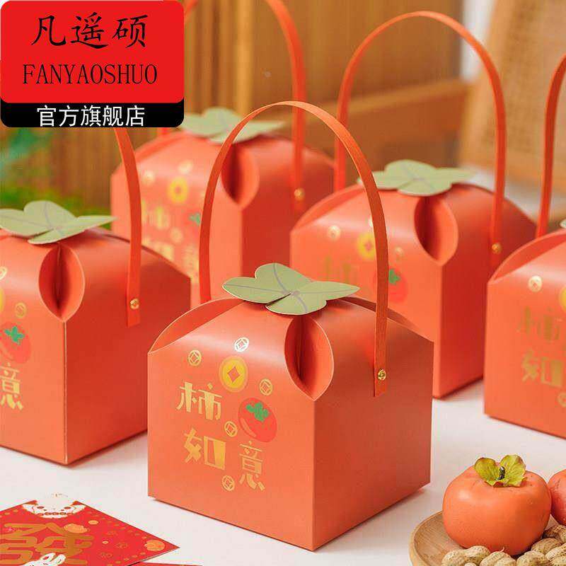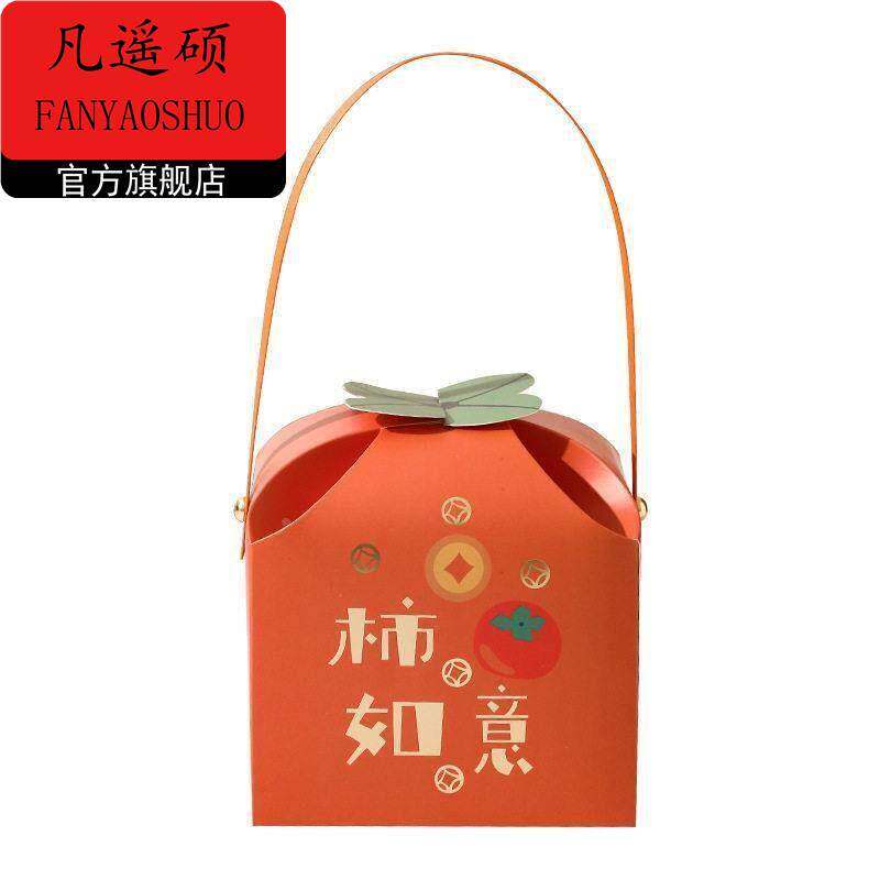 新年礼盒新年橙色手提盒创意柿子型礼品包装盒烘焙糖果饼乾雪花酥