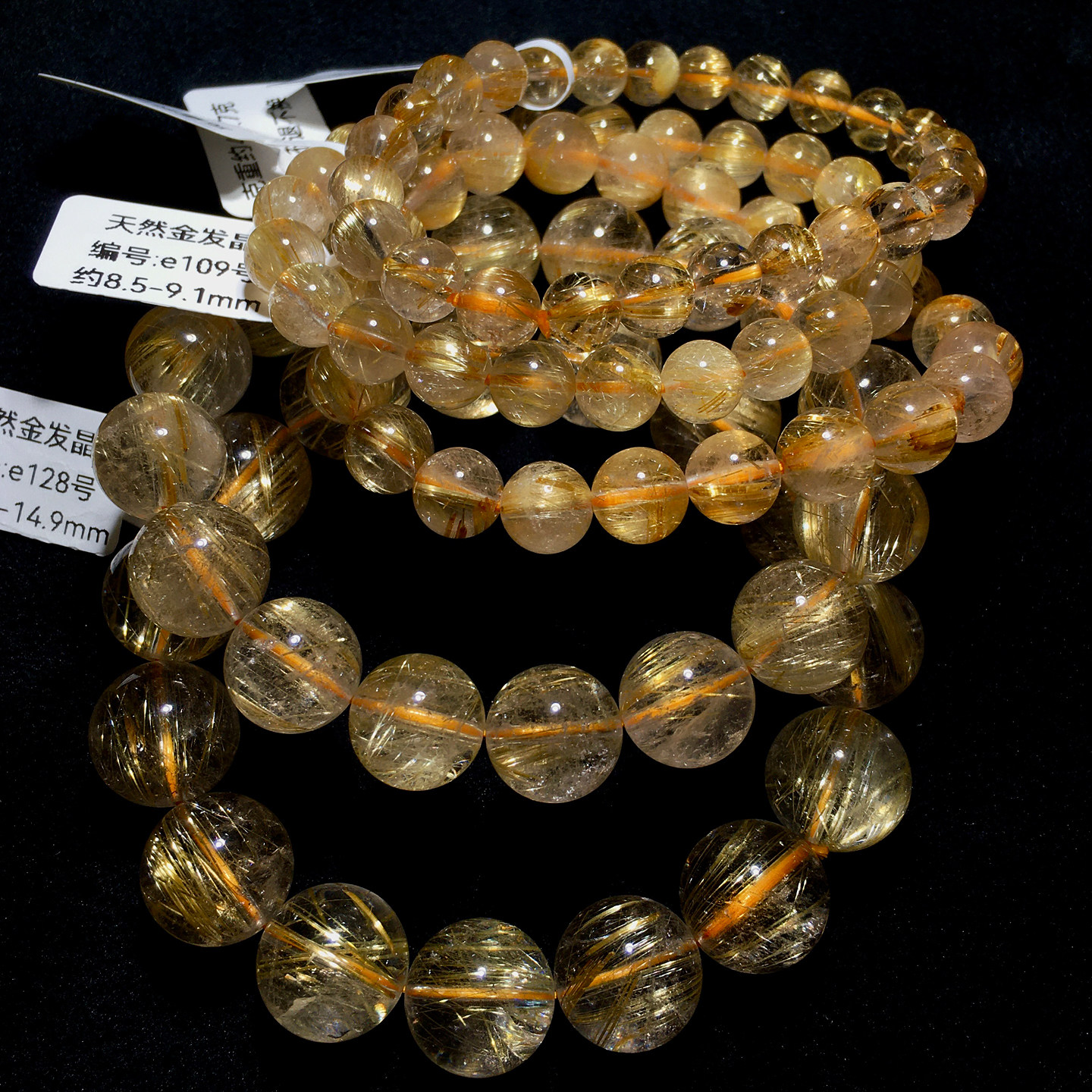 天然金发晶单圈手串顺发巴西浓密发丝水晶手链钛晶饰品男女情侣款