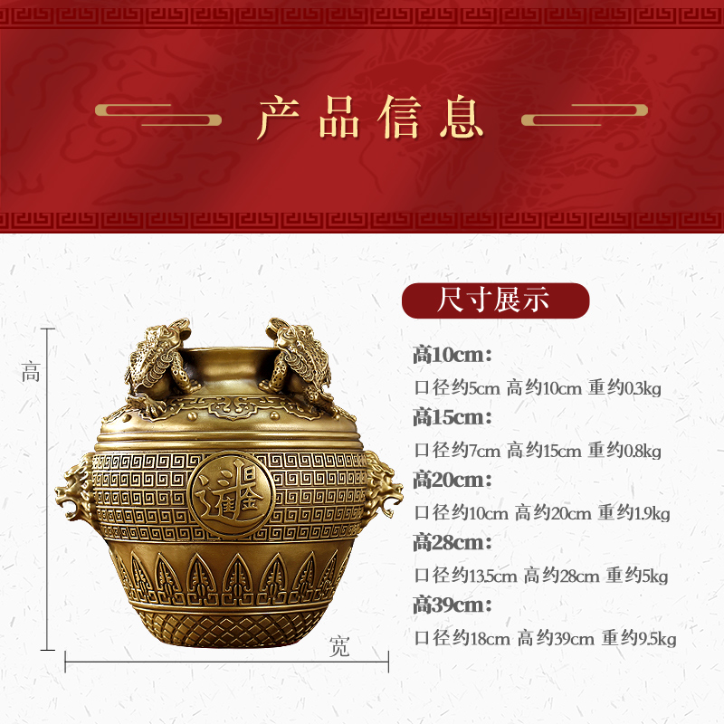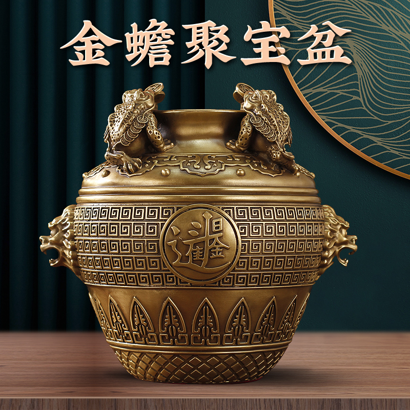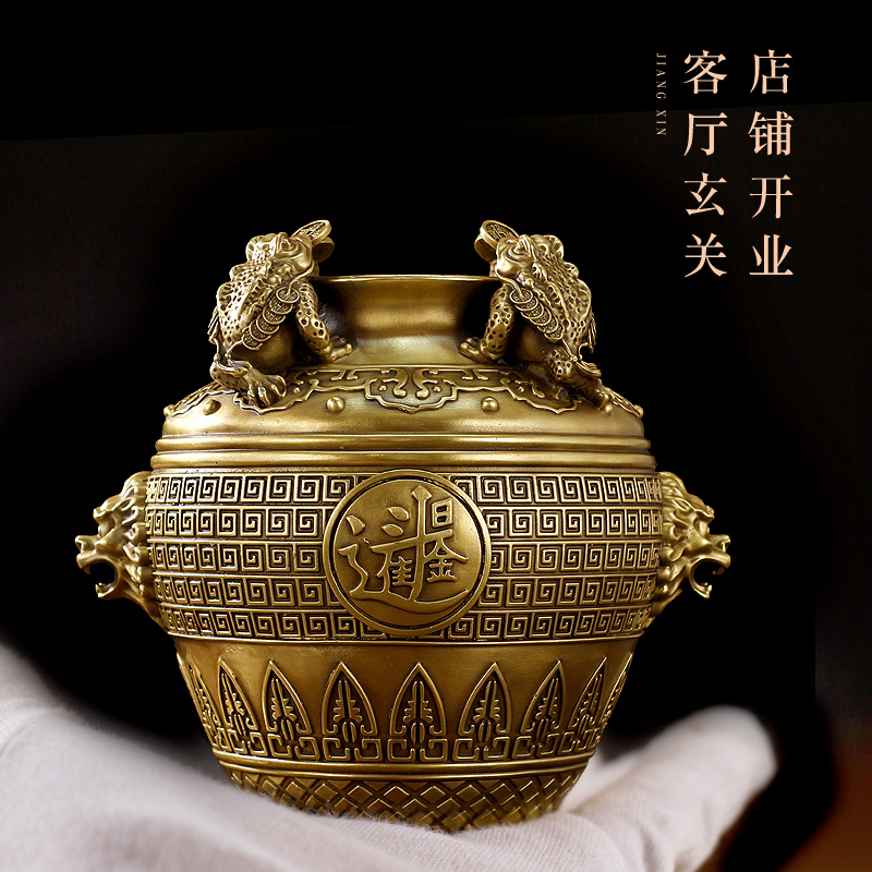 聚宝盆纯铜黄铜米缸铜缸金蟾店铺开业送人礼品客厅卧室工艺品摆件