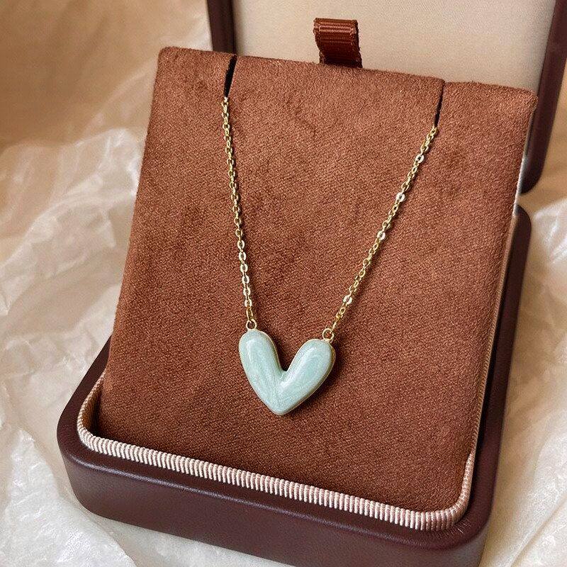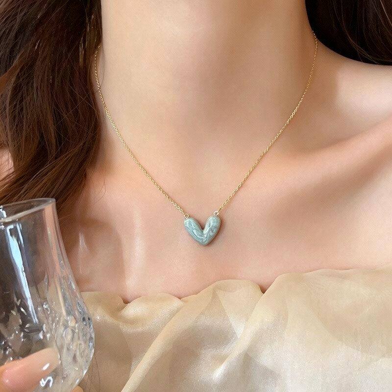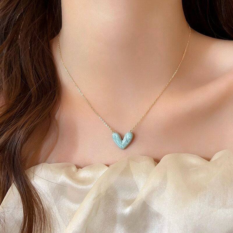项链爱心蓝色链轻晕染吊坠2026新款奢小众高级感百搭锁骨滴油颈链