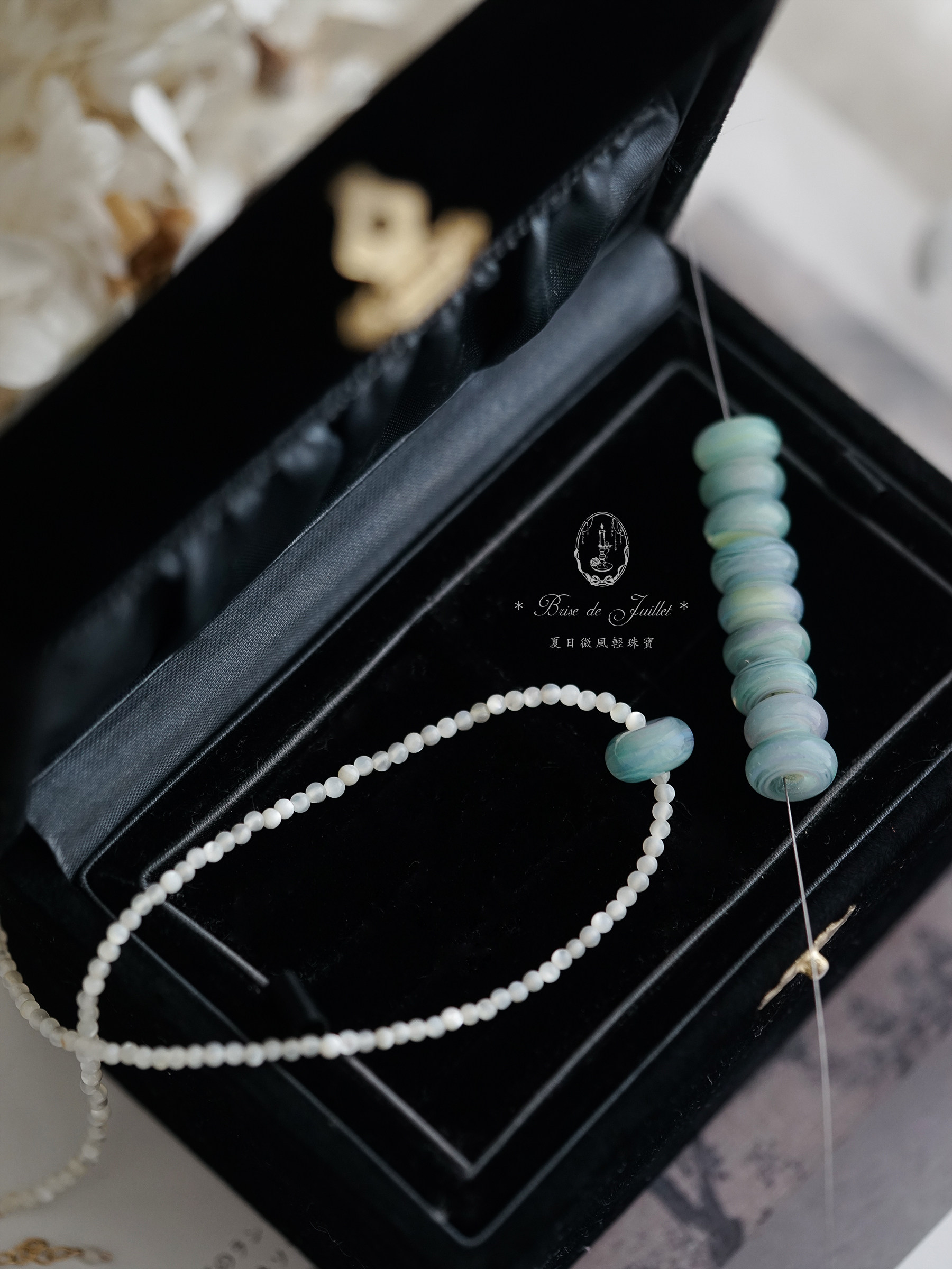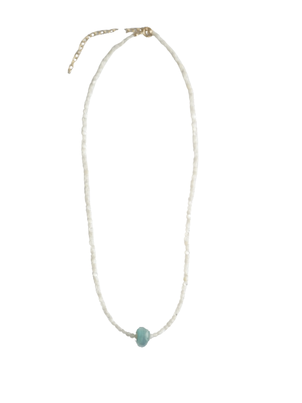 夏日微风/烟雨黛蓝。手制蓝色琉璃珠贝壳项链美国包金原创小众