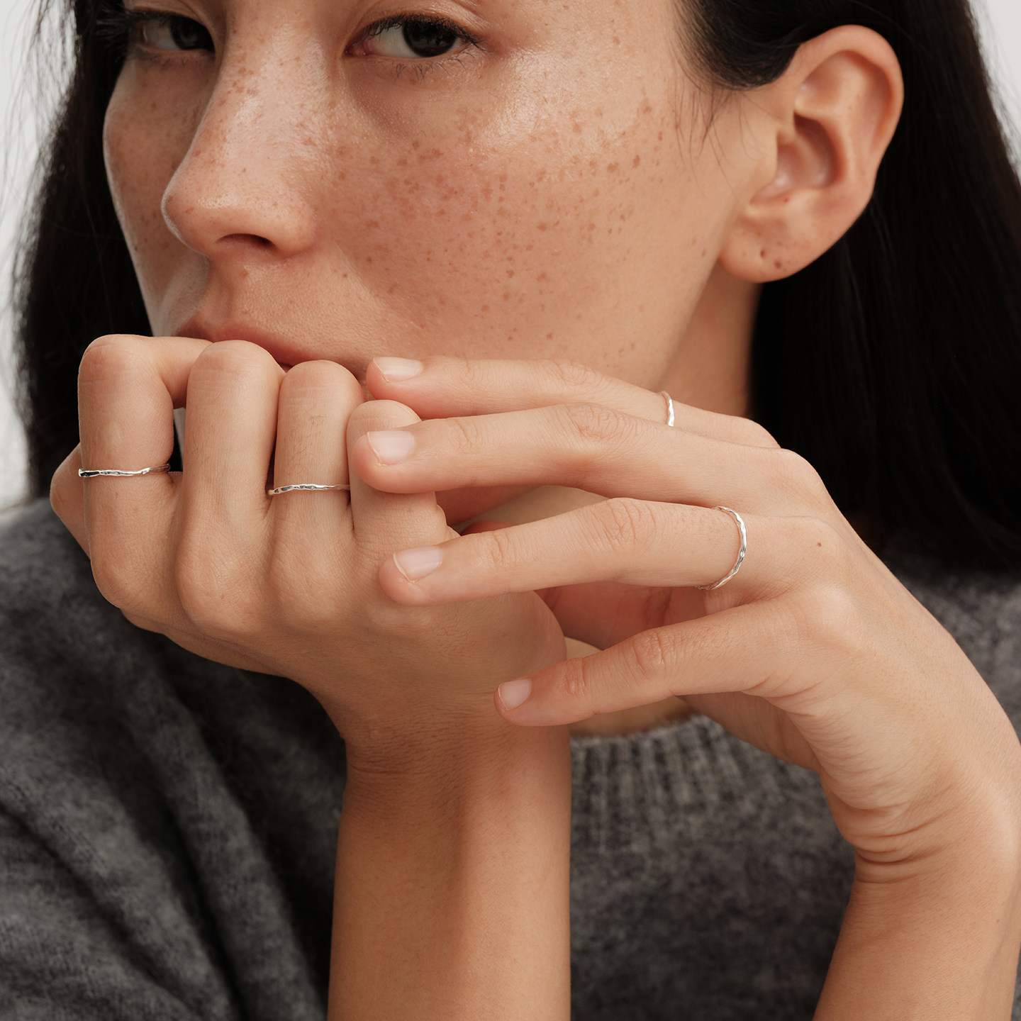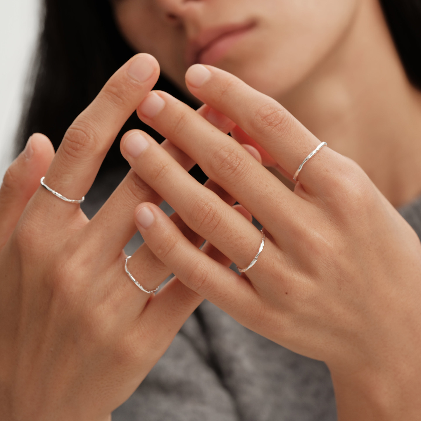 【CnHnOn脂肪商店】s925纯银手工锤纹极细简约百搭日系素银戒指