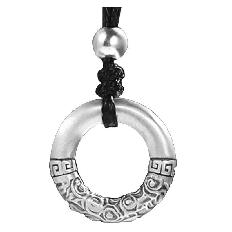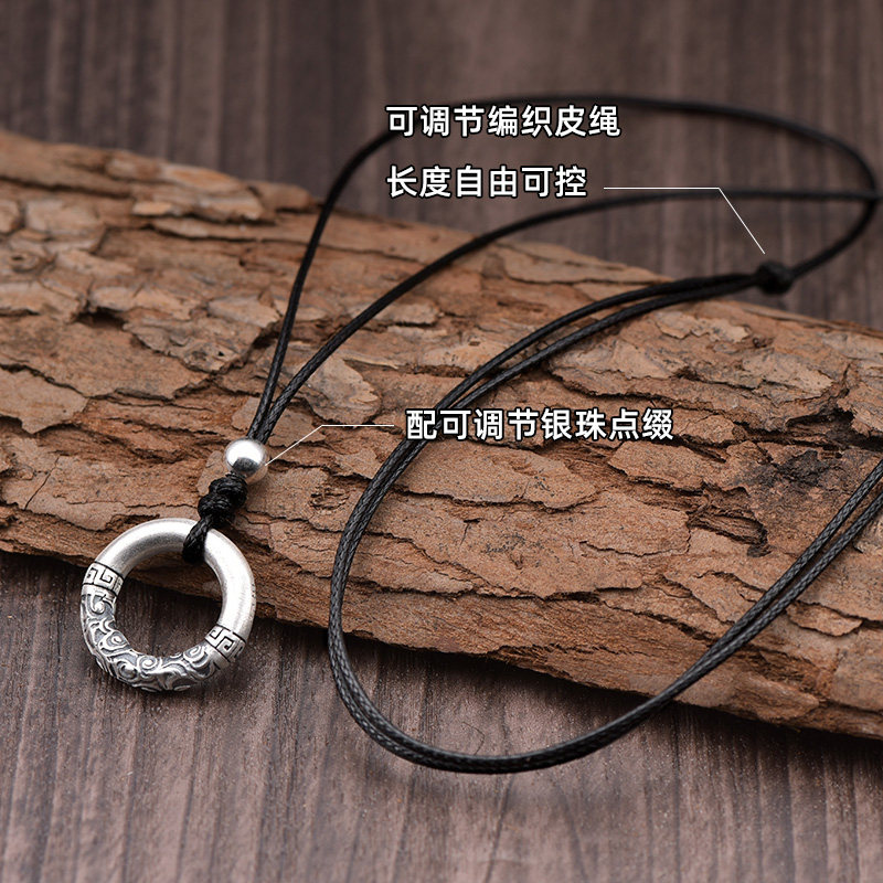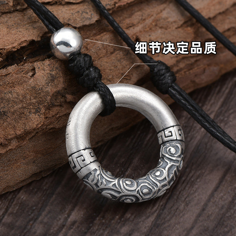 s999足银实心乾坤圈平安扣吊坠男士祥云项链情侣挂坠复古潮流首饰