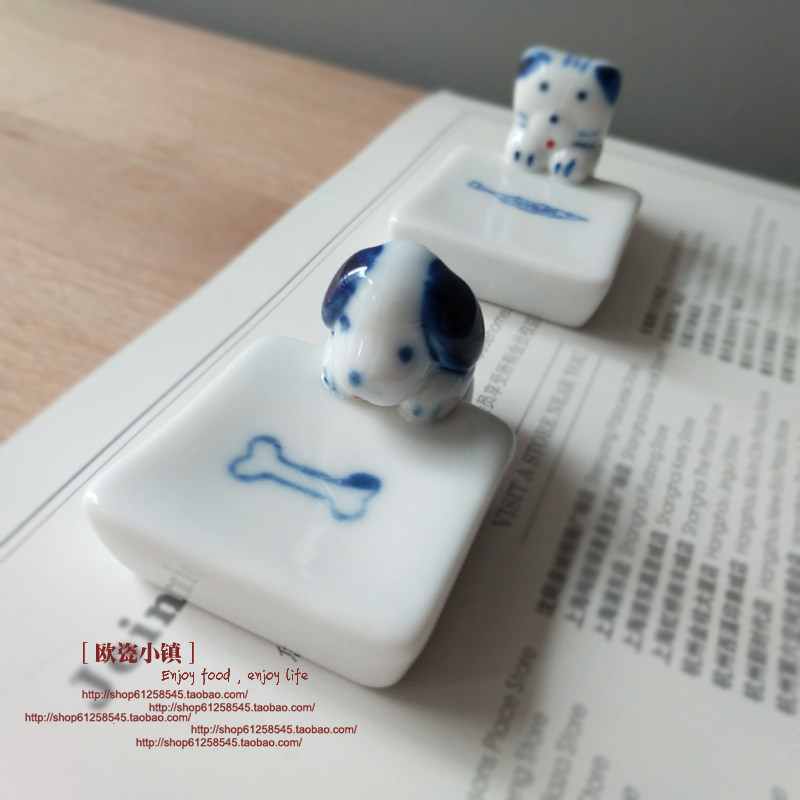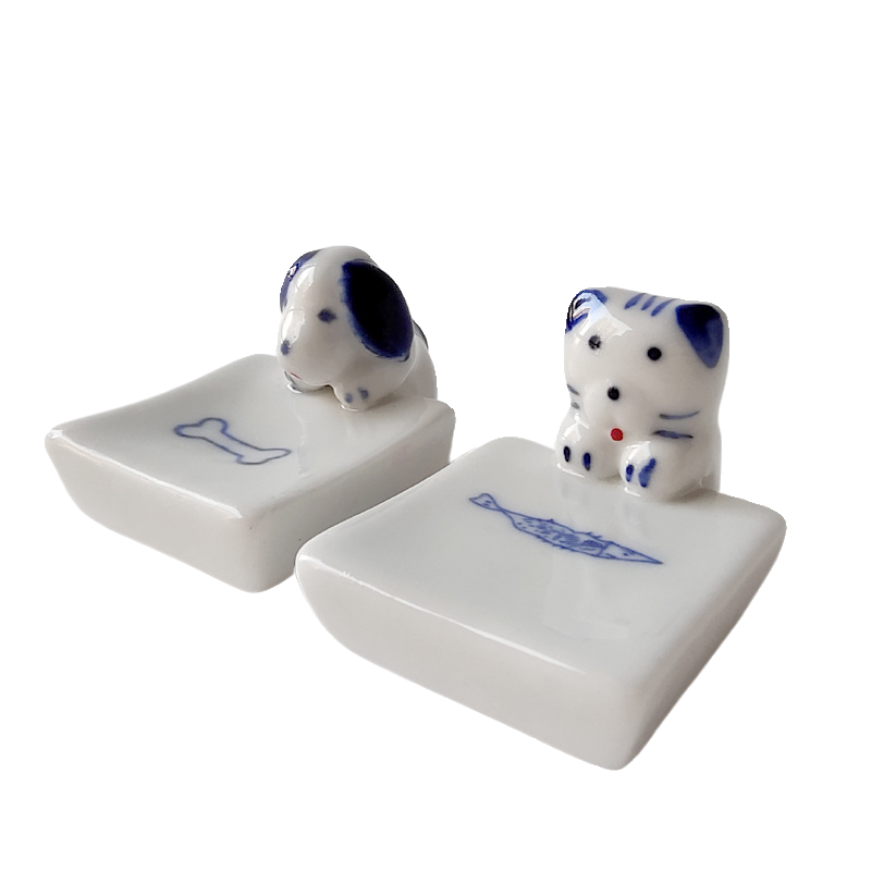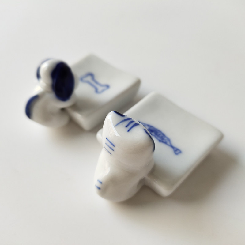 【外贸余单】桌面摆件筷子托架小猫小狗首饰托盘高温陶瓷装饰礼品