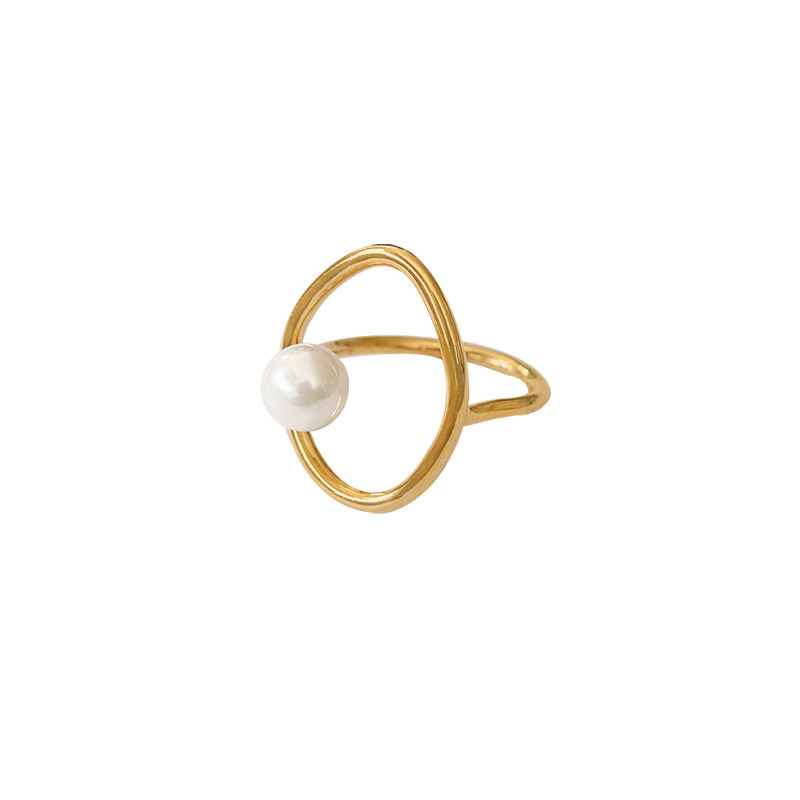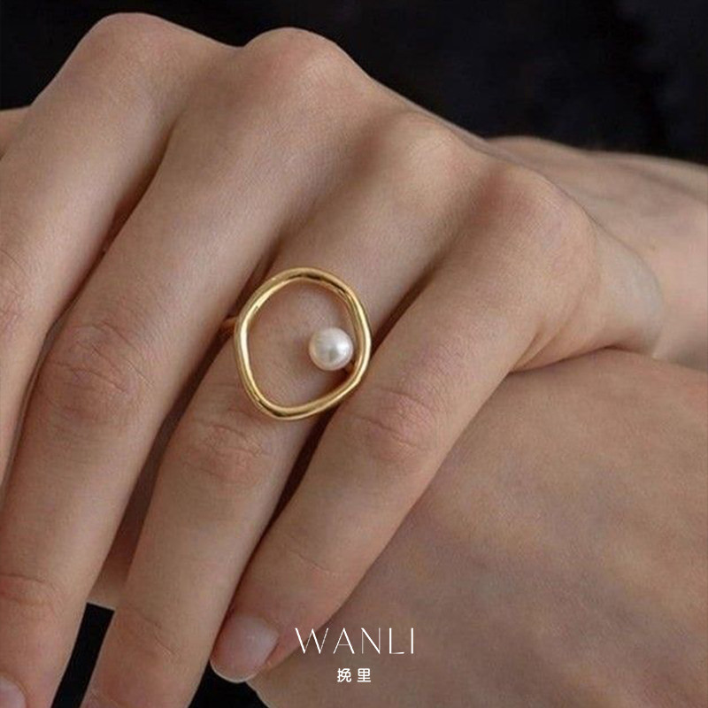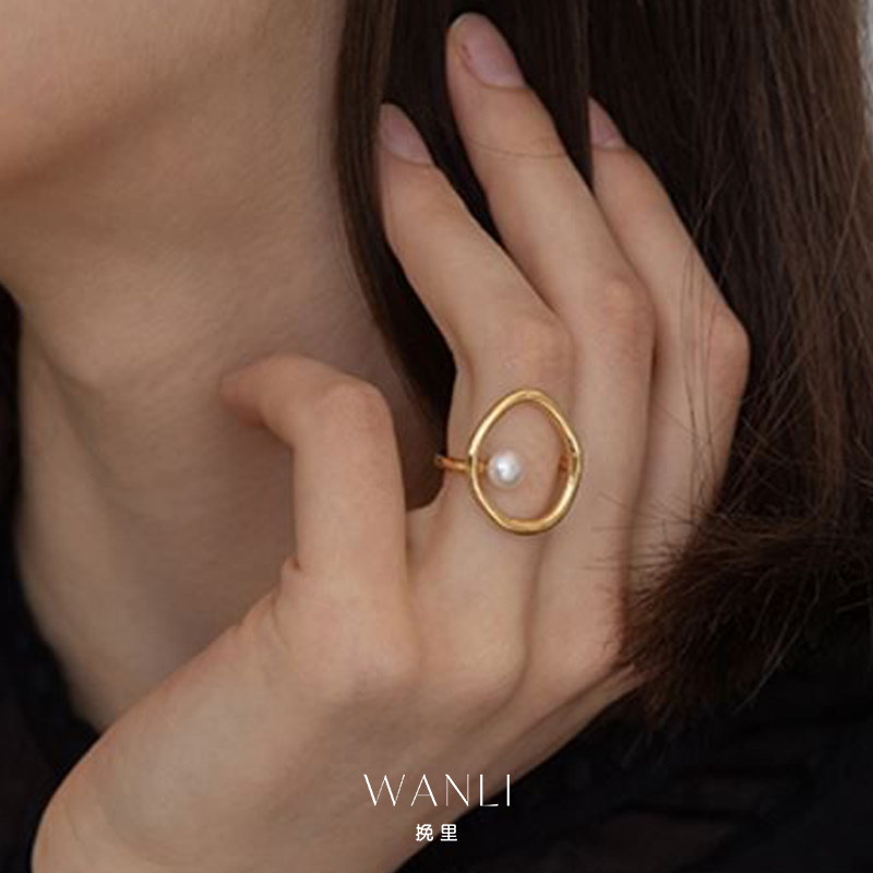 挽里镂空线条圆圈珍珠戒女简约百搭气质欧美ins风配饰高级食指戒