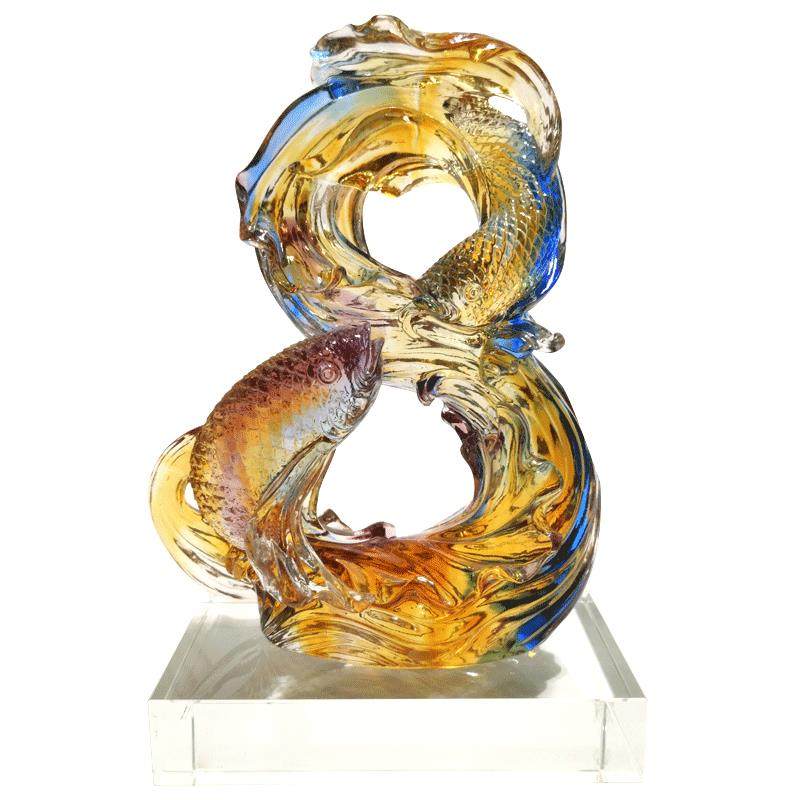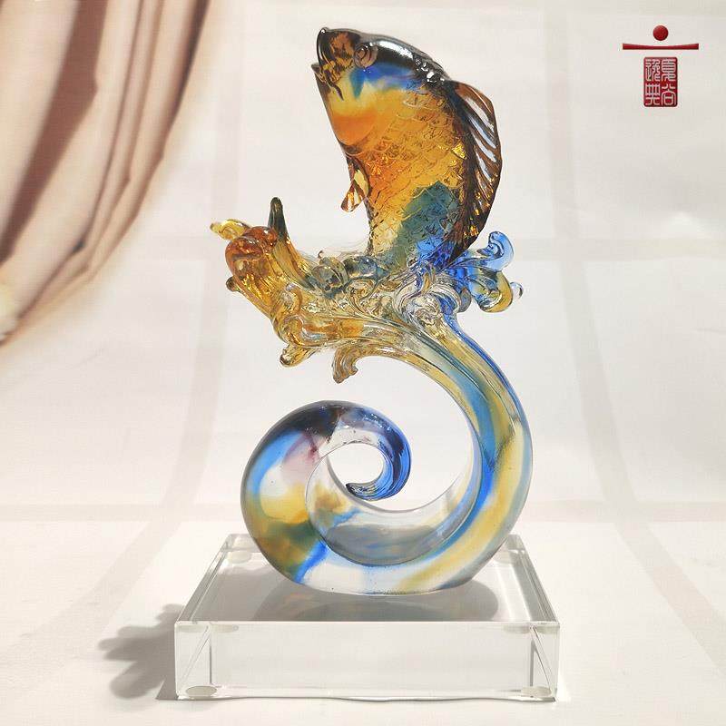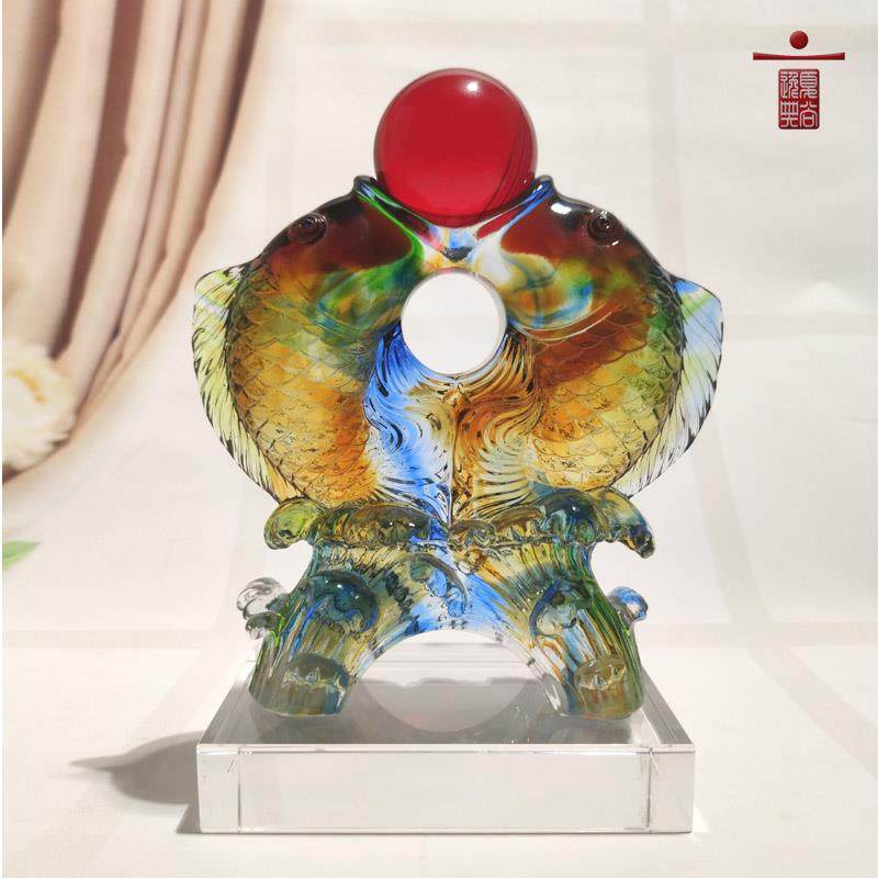 琉璃工艺品水晶鱼摆件轻奢锦鲤中式客厅电视柜装饰品乔迁新居礼物