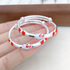 足银9999珐琅红色蝴蝶结凯蒂猫纯银推拉手镯宝宝周岁礼物女孩小童