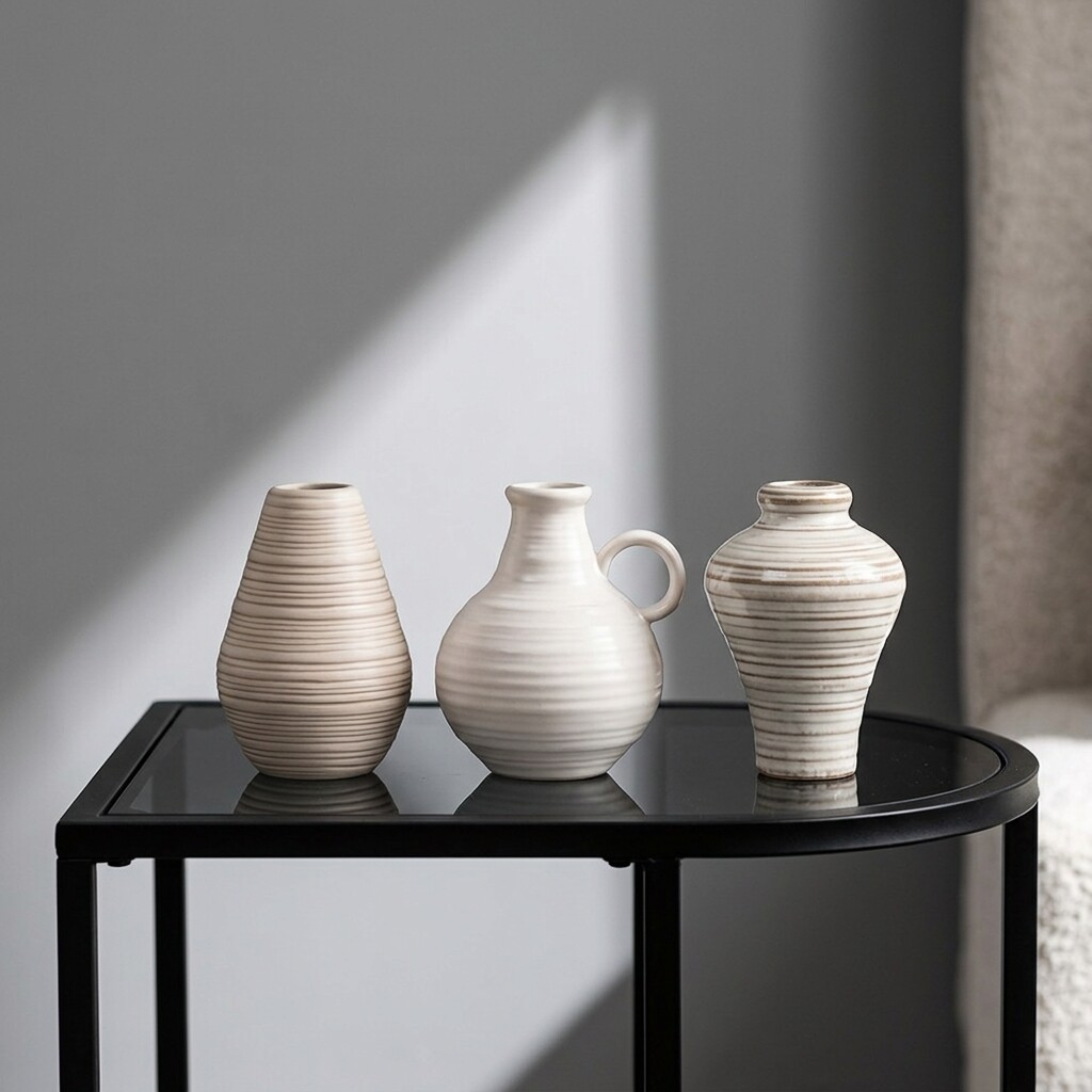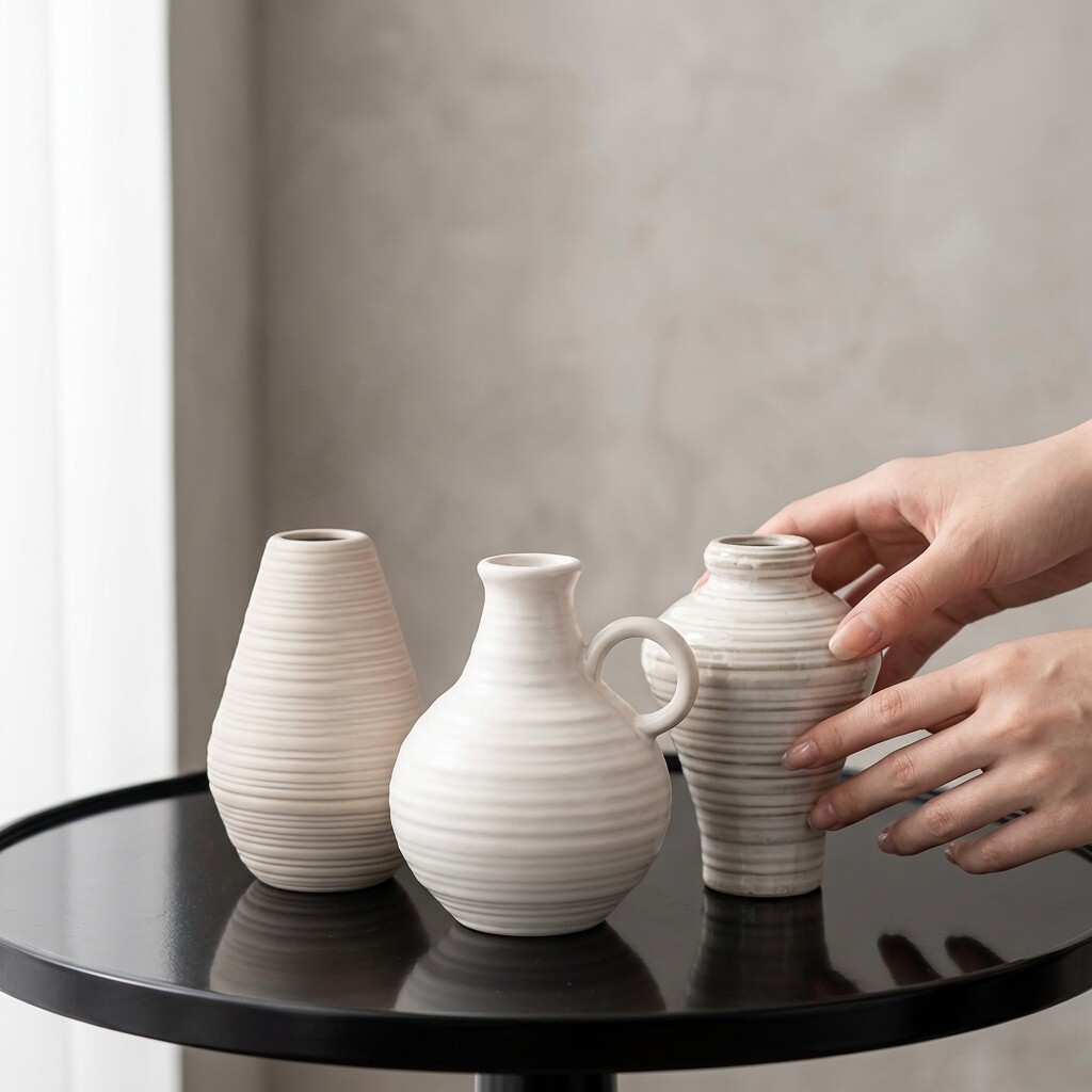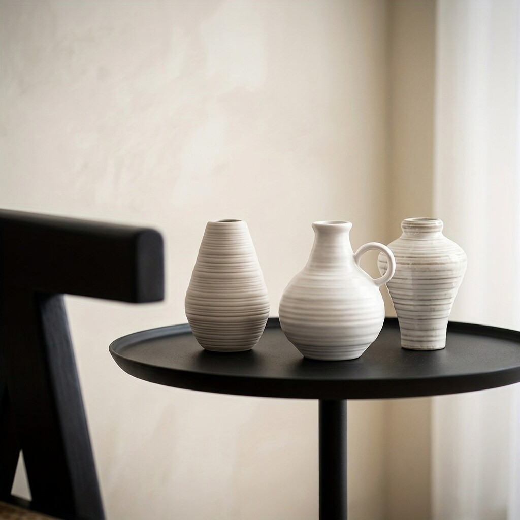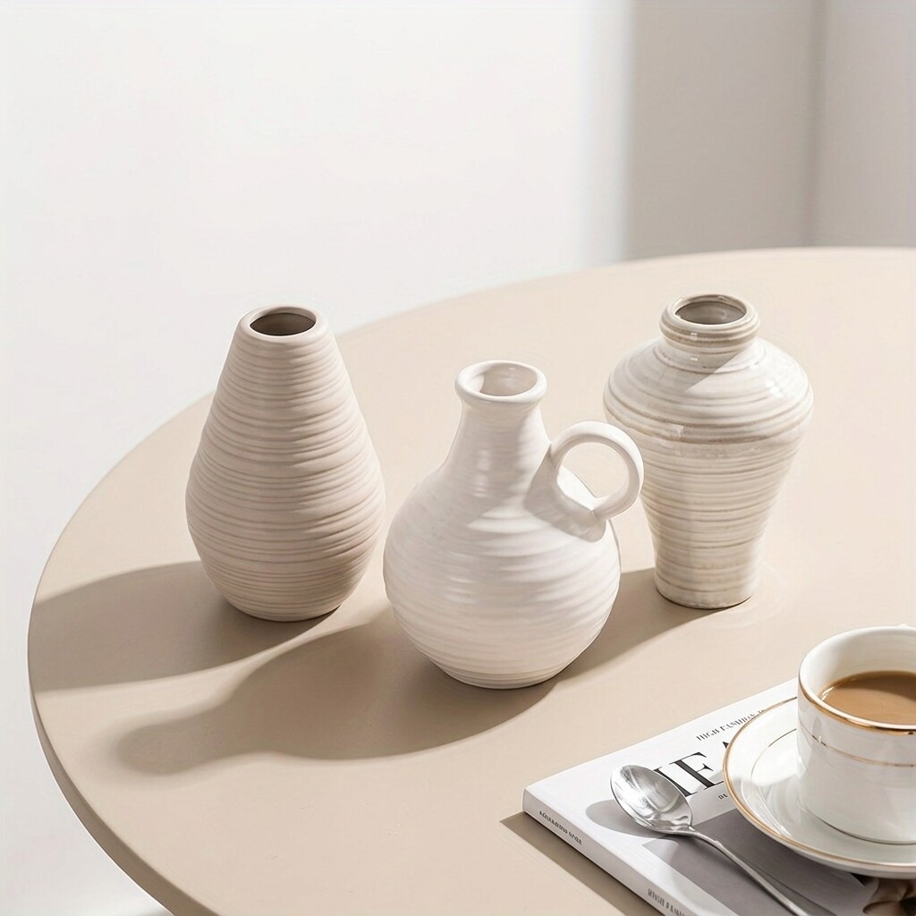 简约陶瓷花瓶装饰摆件家居客厅鲜花插花器桌面工艺品三件套组白色