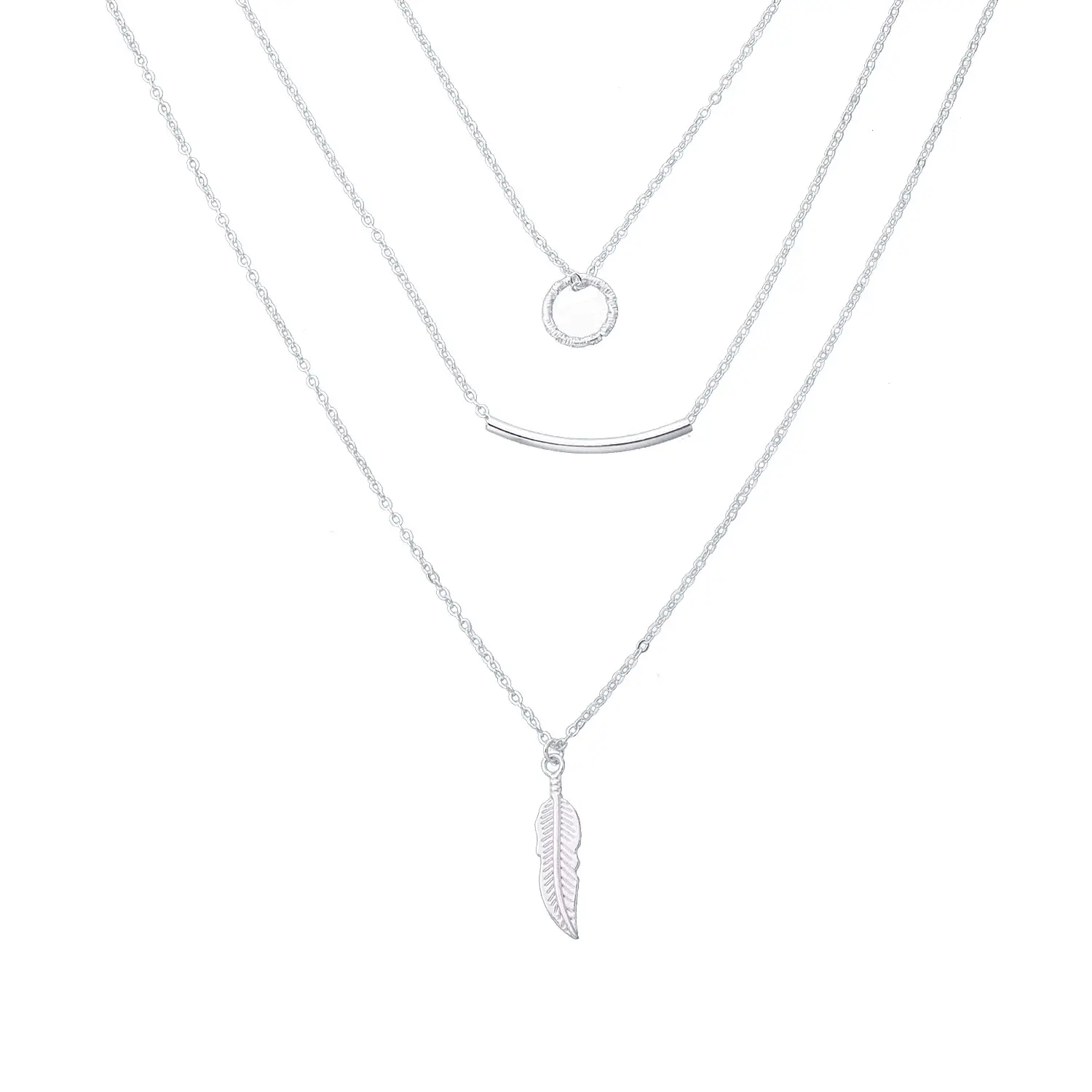 欧美饰品 多弯管树叶圆环项链女 时尚多层潮流项饰毛衣链