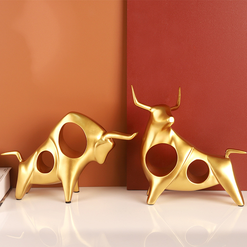 牛气冲天摆件轻奢家居客厅酒柜子装饰品玄关招财金牛年吉祥物创意