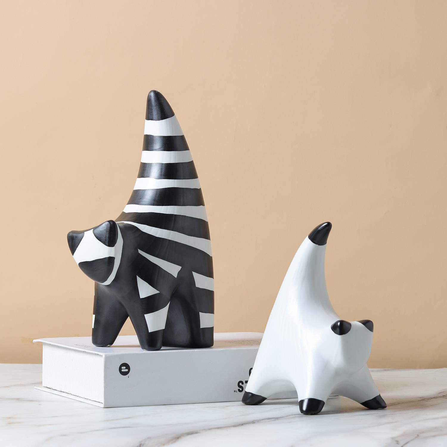 现代简约黑白异形抽象小猫陶瓷饰品软装饰饰品创意陶瓷样板房