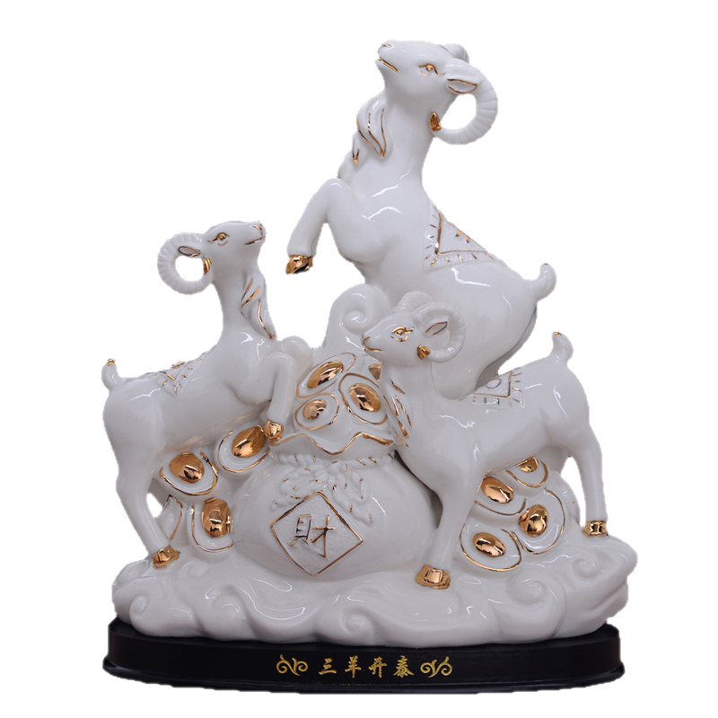 白色陶瓷三羊开泰羊摆件三阳开泰风水招财镇宅工艺品家居装饰品