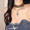 choker美拉德棕色皮质复古项圈双层十字架罗马铆钉朋克百搭项链潮