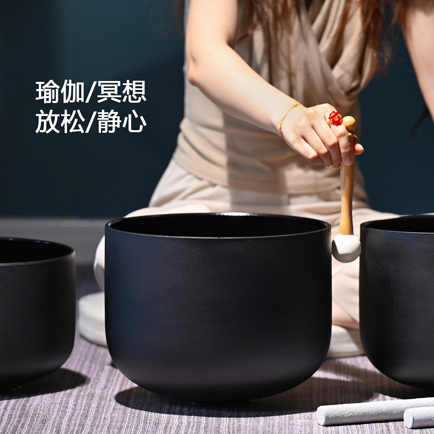 水晶钵瑜伽音钵水晶颂钵黑色音乐碗冥想瑜伽套装消磁水晶佛音钵