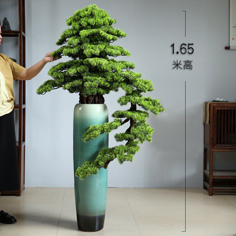 客厅中式摆件落地过道o盆景玄关树大型迎客松酒店室内彷真绿色植