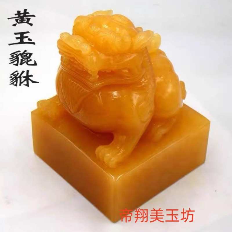 米黄玉貔貅印章玉玺摆件家居办公装饰貔貅印章摆件