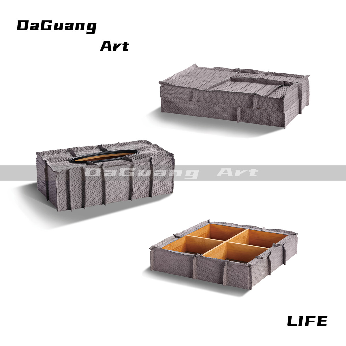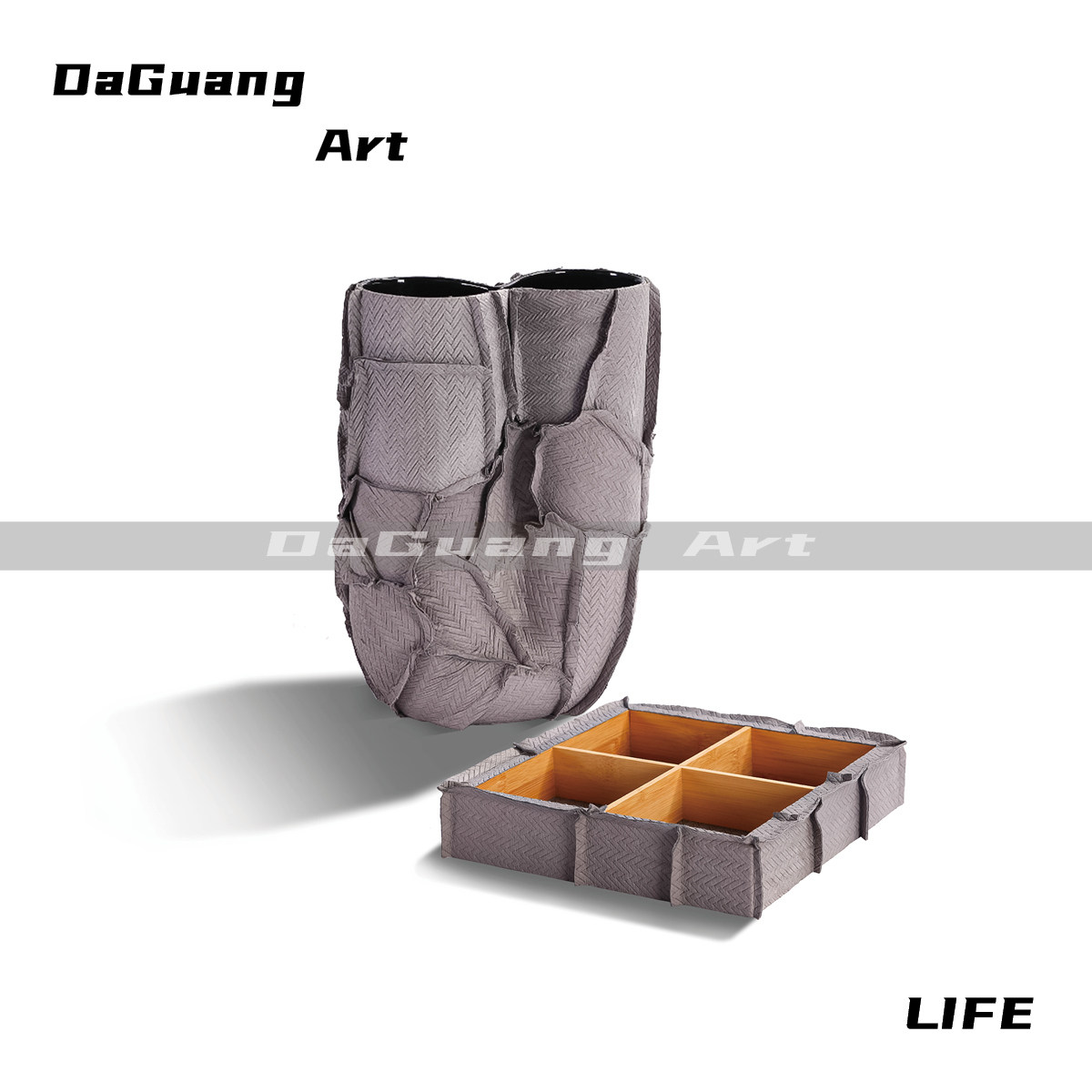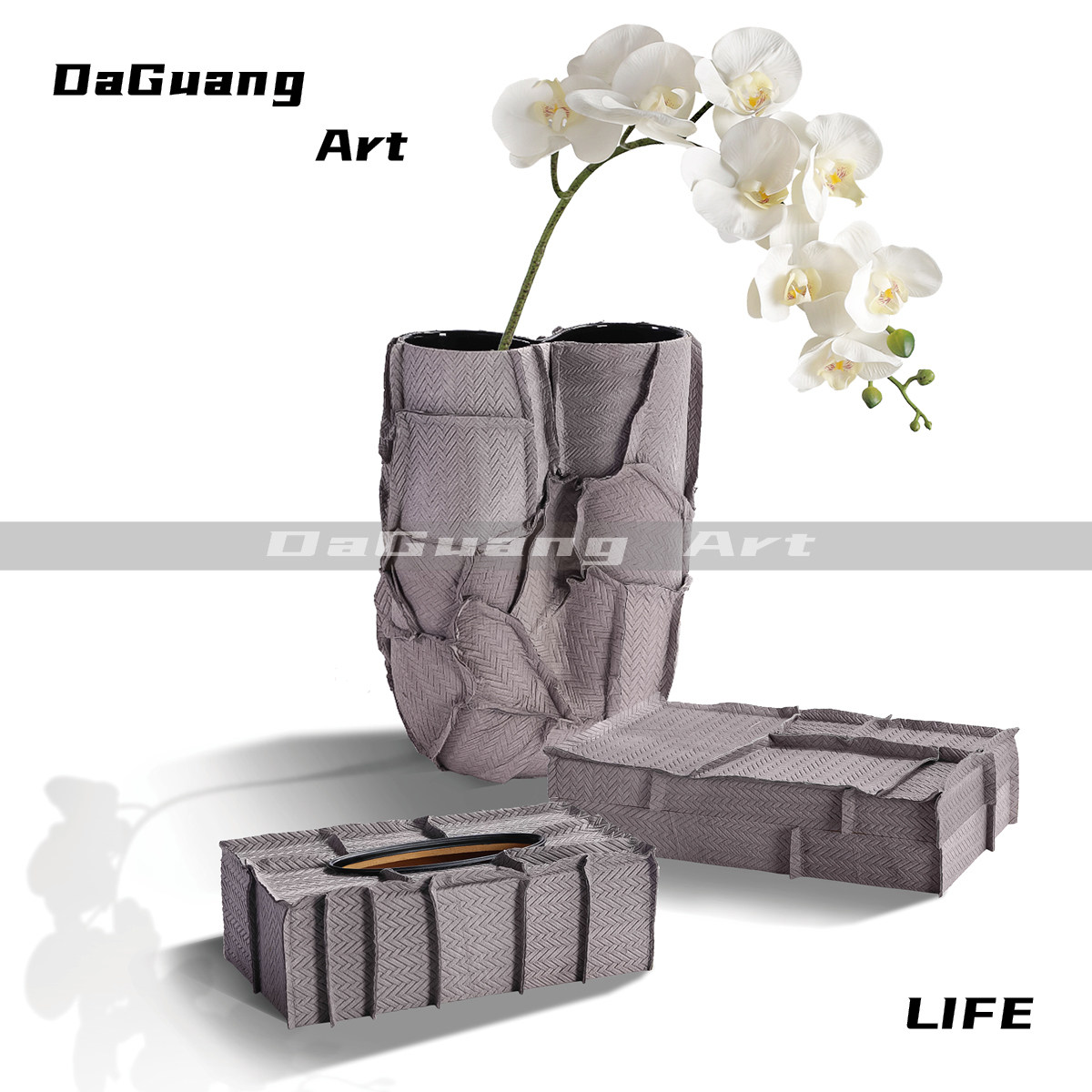 大广 简约现代艺术皮革花器纸巾盒创意组合 居家酒店餐厅软装饰品