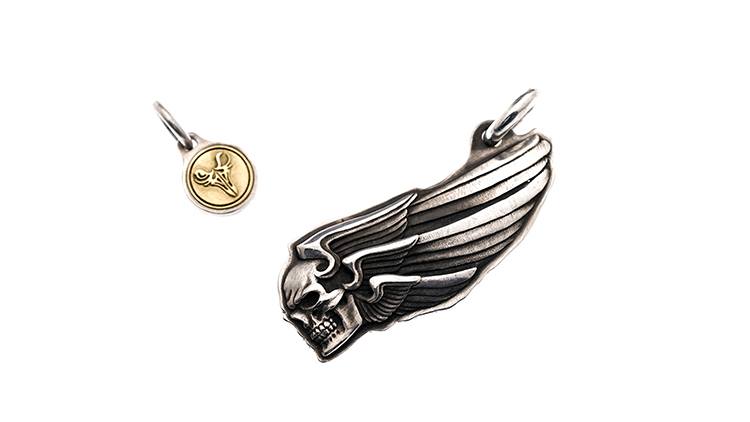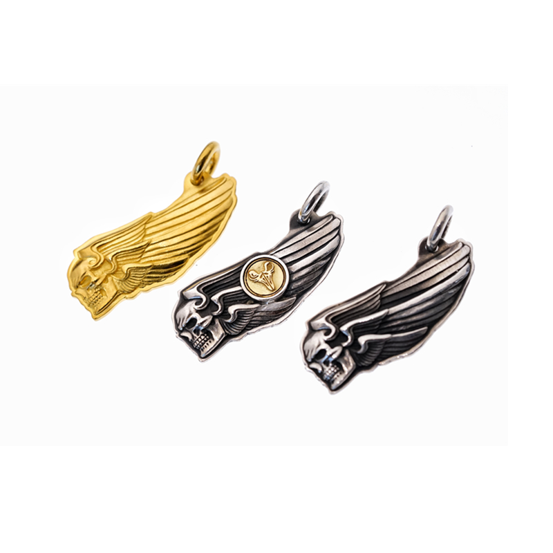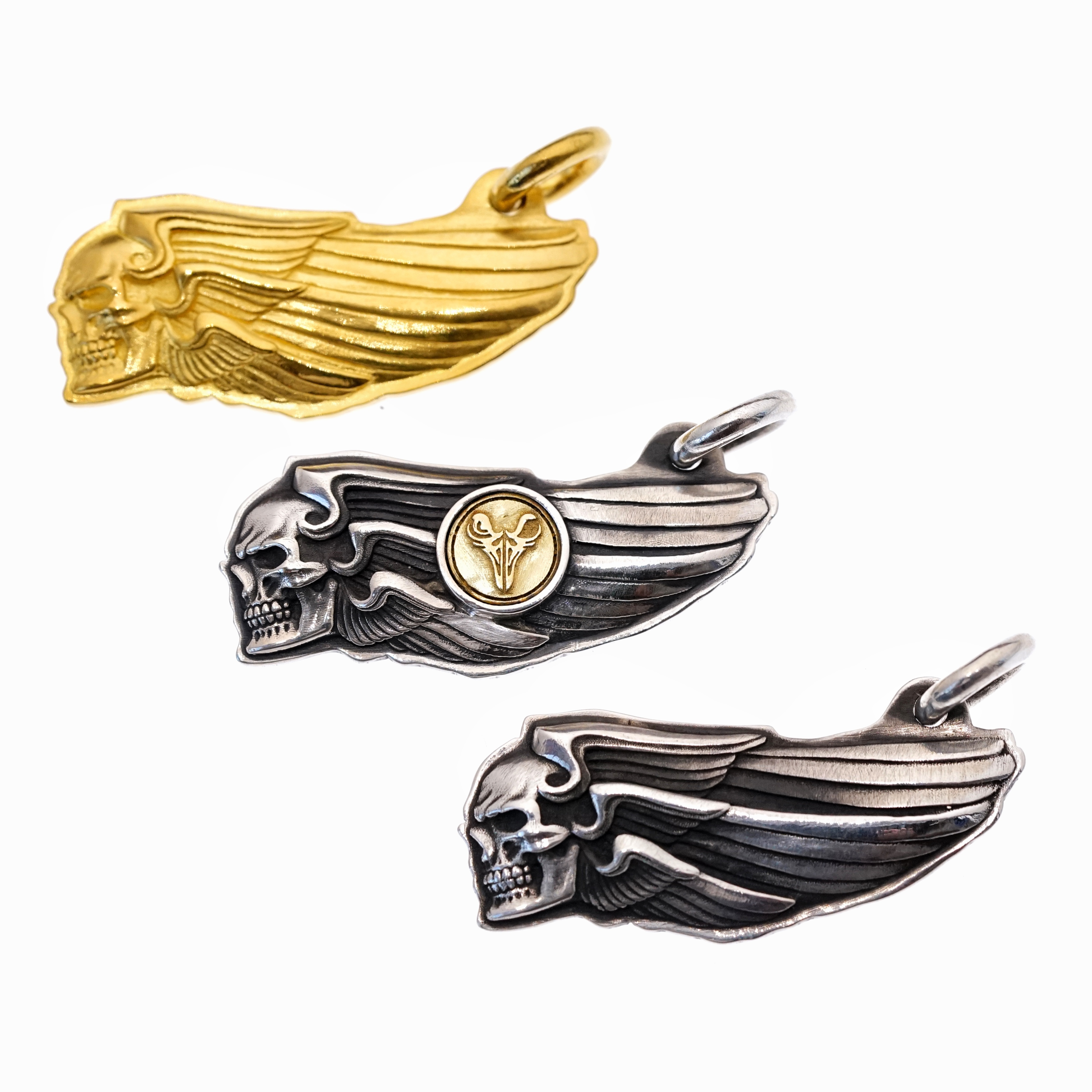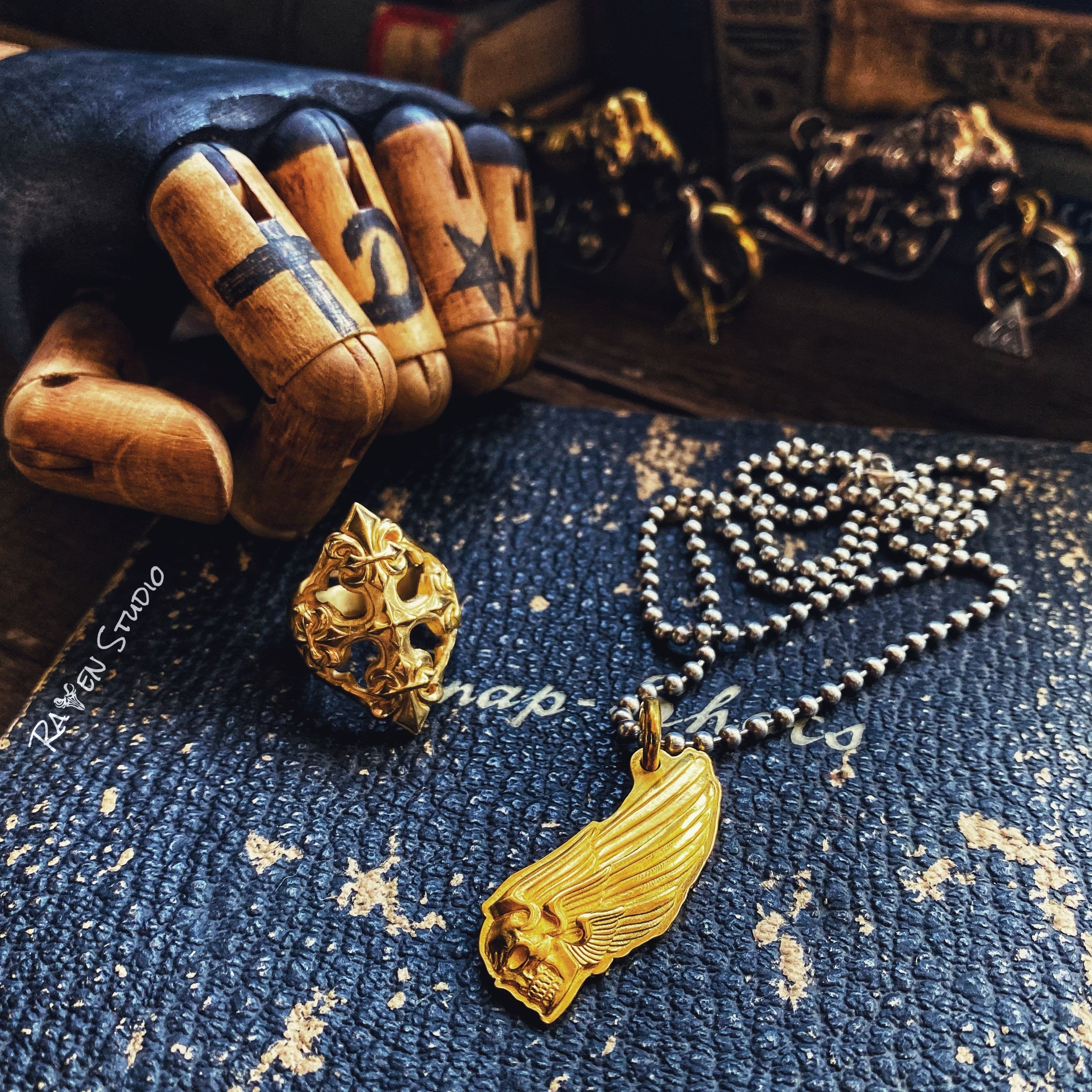渡鸦工作室原创公路天使吊坠黄金骷髅小吊牌钥匙坠925银饰手工