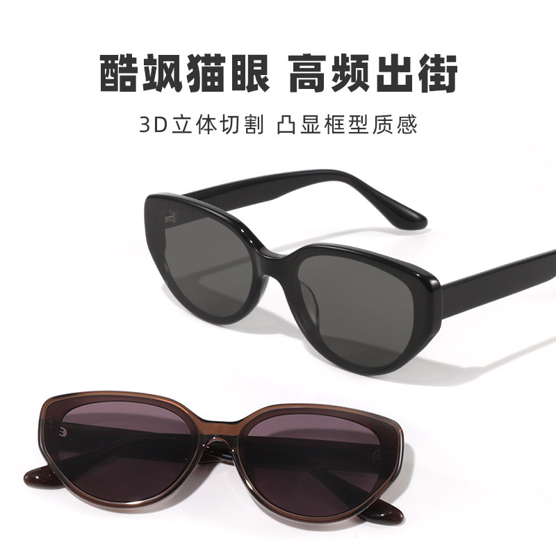 gm猫眼墨镜女款高级感防紫外线女士眼镜2024新款太阳镜防晒不偏光