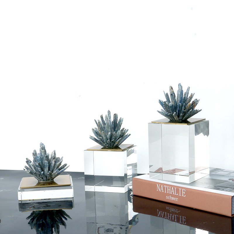 天然蓝色晶石水晶底座摆件简约客厅样板间酒柜摆设现代玄关饰品