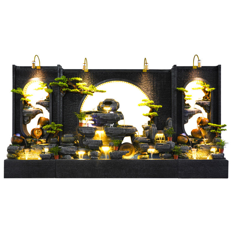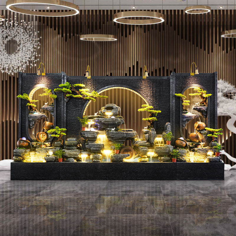 酒店别墅大型水幕墙流水屏风户外庭院假山流水喷泉鱼池造景观摆件